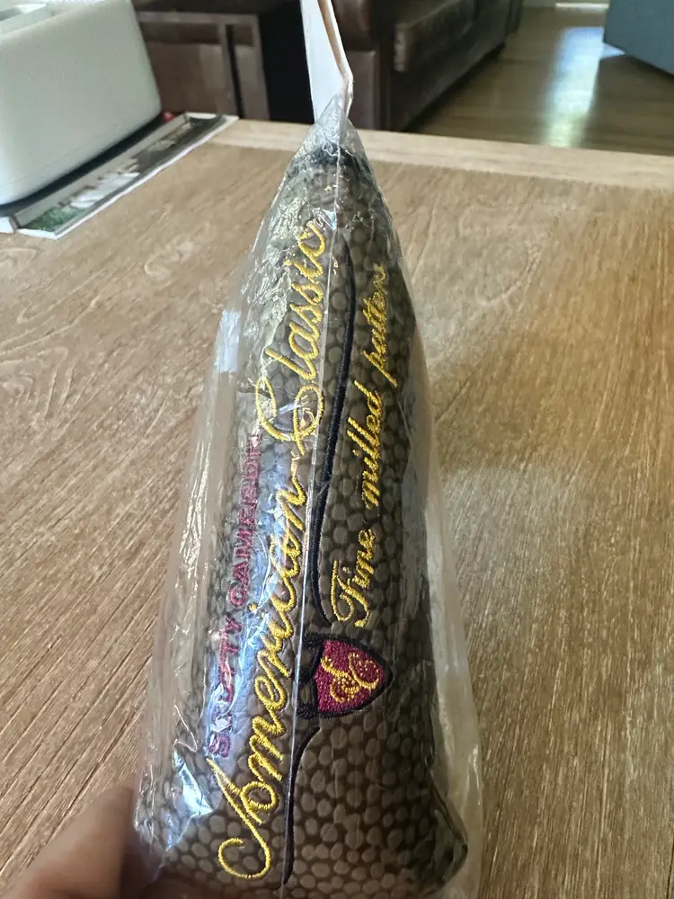 For sale is a brand-new, unused Scotty Cameron Studio Design American Classic putter headcover. This rare headcover features a dark, snakeskin-style texture with elegant gold and red embroidery, including “Scotty Cameron,” “American Classic,” and “Fine Milled Putters” script. It also includes a metal pivot tool, as shown in the photos.