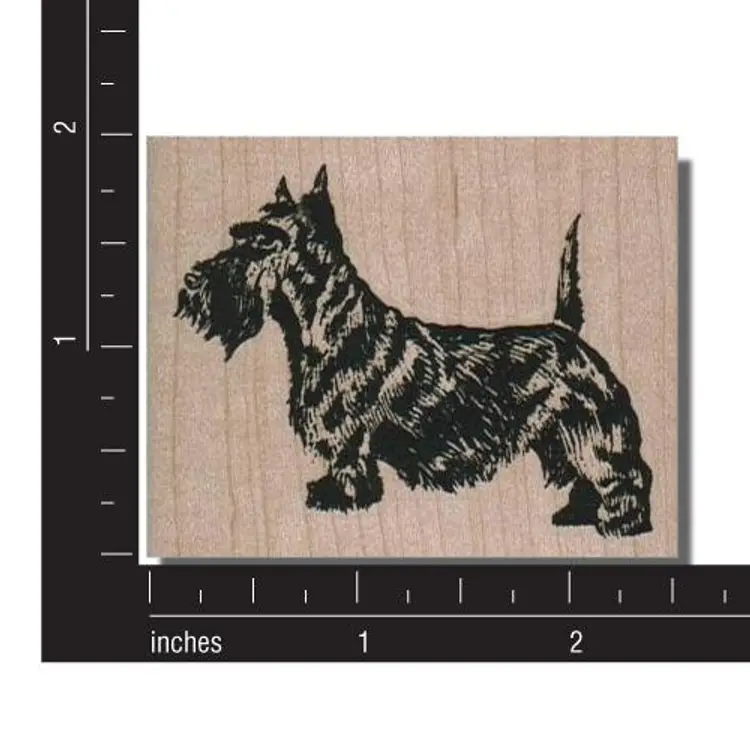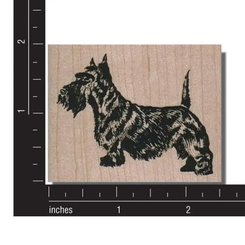 Scotty Dog Standing - Scottish Terrier Animal Rubber Stamp Size: 2-1/2 x 2 inches Wood Mounted Red Rubber Handmade