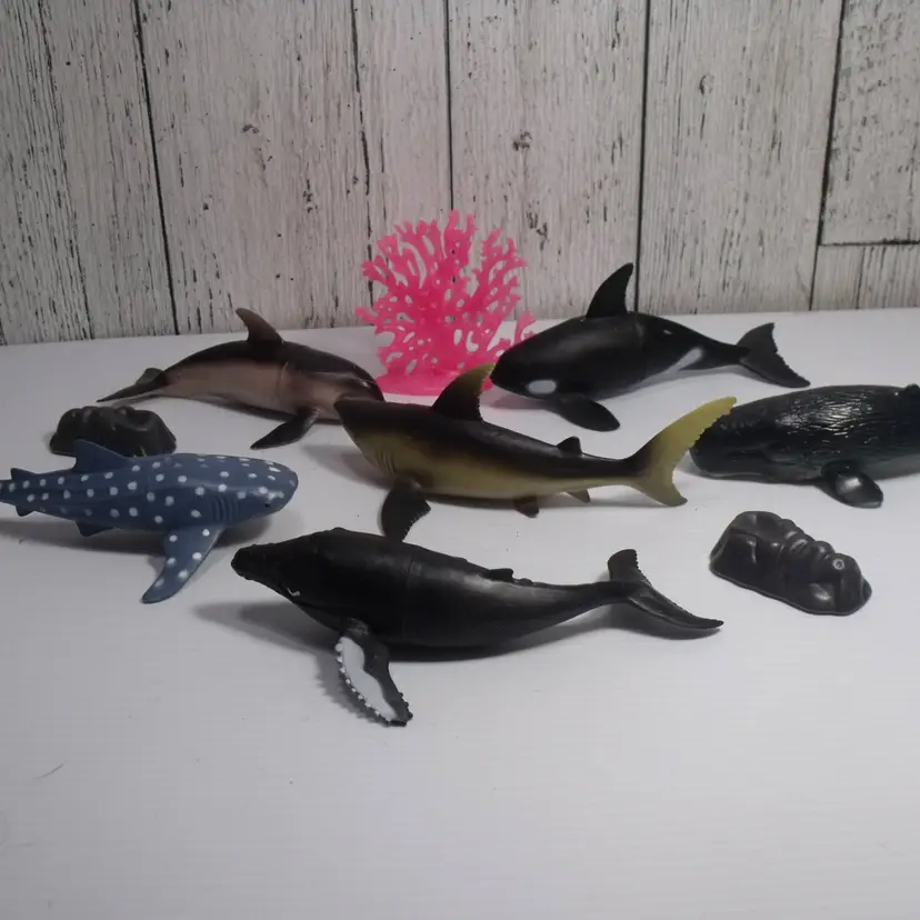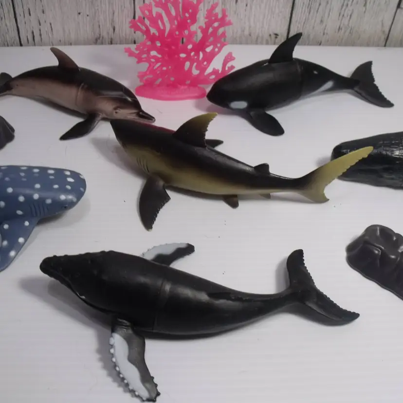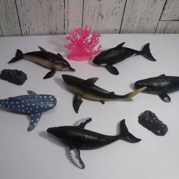 This lot of 9 sea creature animals includes plastic toy accessories such as sharks, whales, and dolphins, each measuring approximately 7 inches in size. Suitable for children aged 8-11 years and 4-7 years, these toys are perfect for imaginative play and educational purposes. Made in China, these sea creatures are a part of the character family of sea creatures, providing a fun and engaging way to explore the world of marine animals.