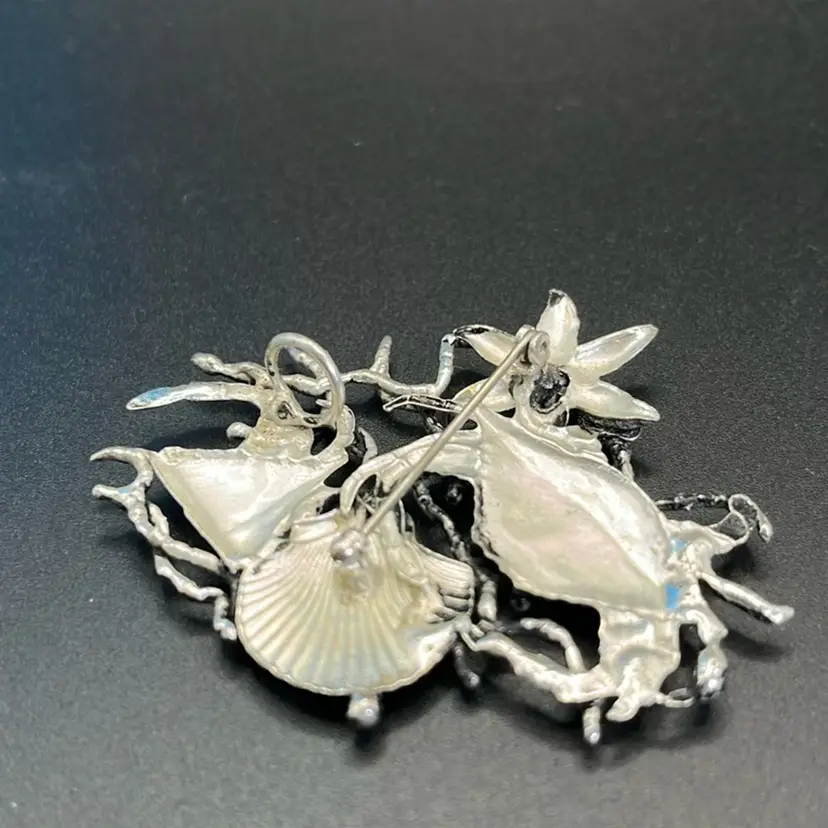 Sea Life Brooch / Pendant Silver Tone 2 1/2โ€ High