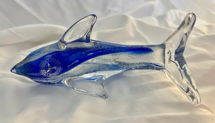 6.25”L x4.5”H, this is a Sea World Home Collection item, it does have a sticker on the bottom please see the photographs. No cracks or chips.