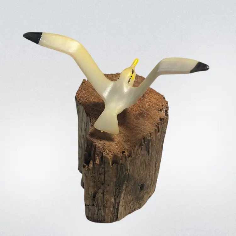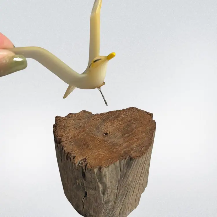 Unsure of maker. Bird is plastic material and will be removed from wood for shipping. Approx: 4.5” h x 3”w