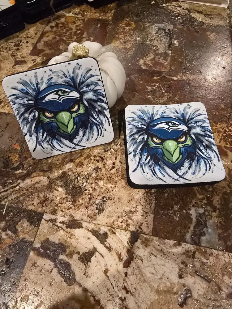 Set of 4 neoprene washable coasters. Free shipping. 3.6x3.6 inches.