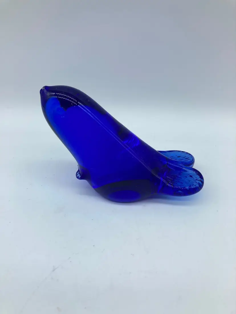 Seal Figurine Cobalt Blue Glass Ornament Ocean Beach Home Decor 3”