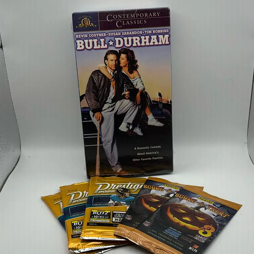 It can’t be for real! No really! It’s a sealed copy of Bull Durham on VHS. And some cards. 😉