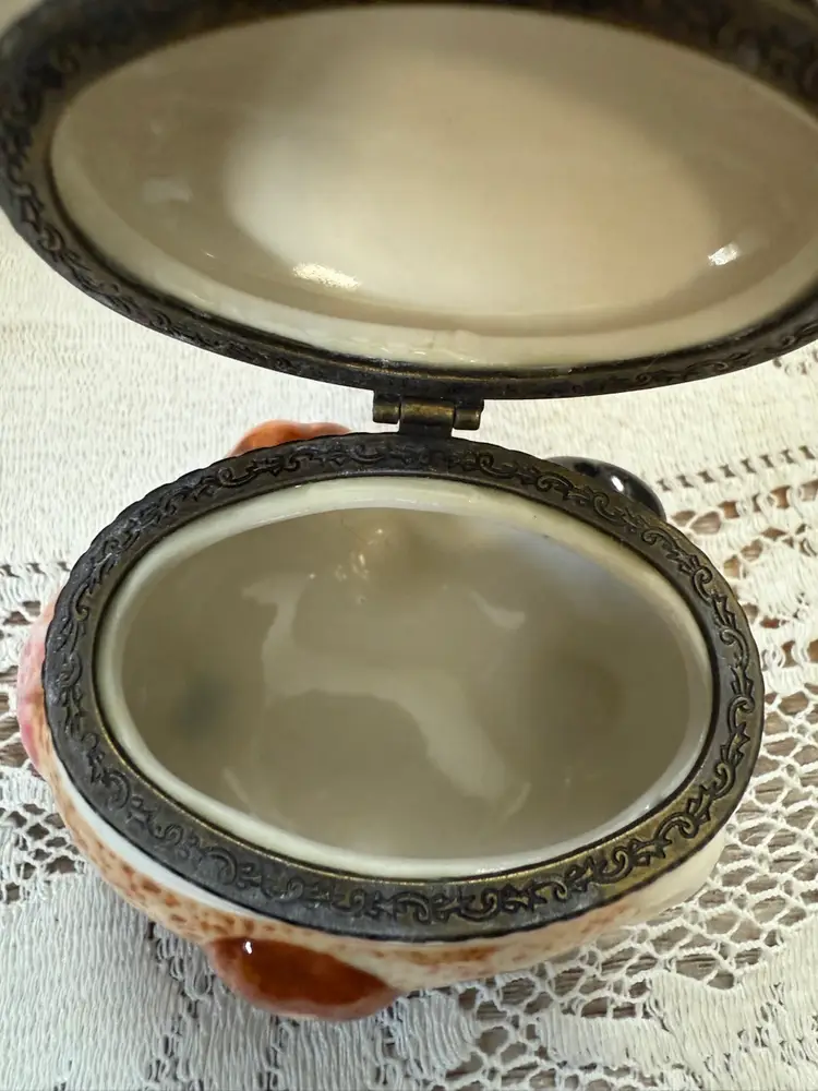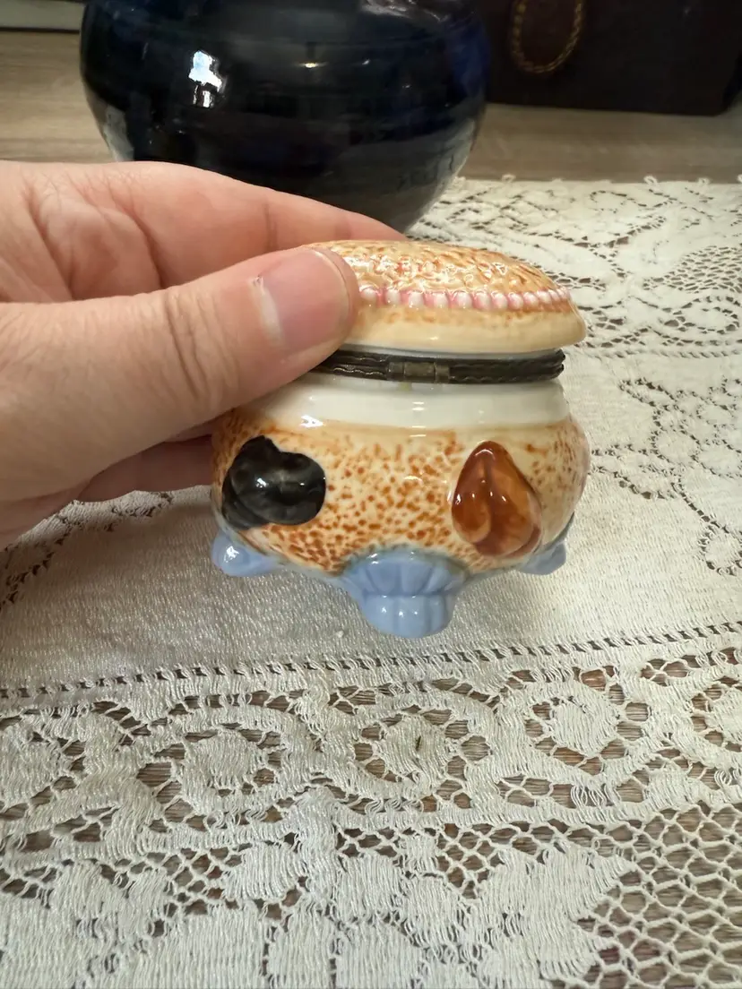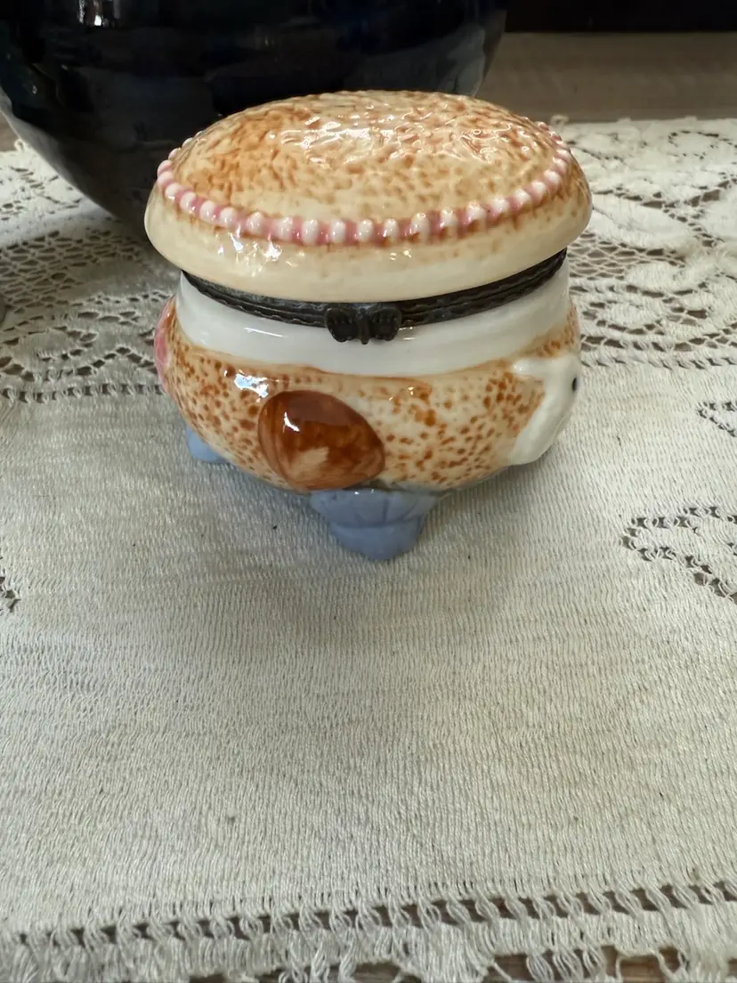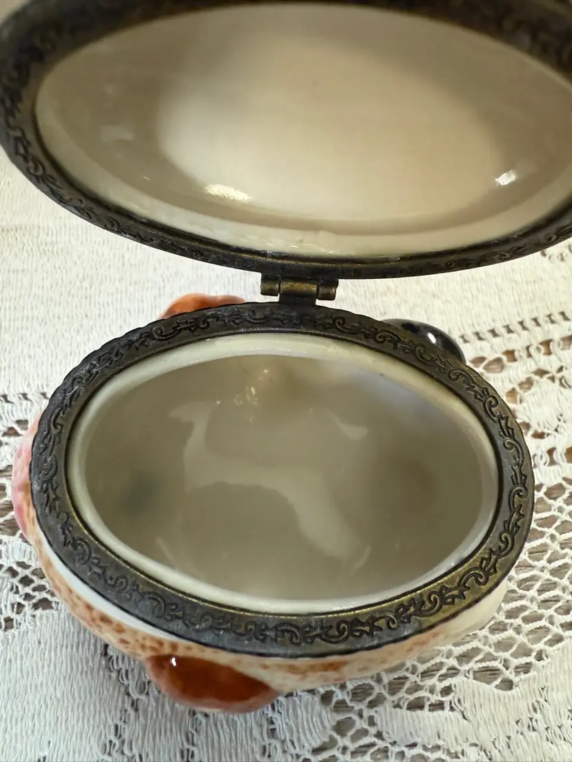 Trinket box with clasp 3.5” no chips or cracks Lid works well Features seahorse, shells