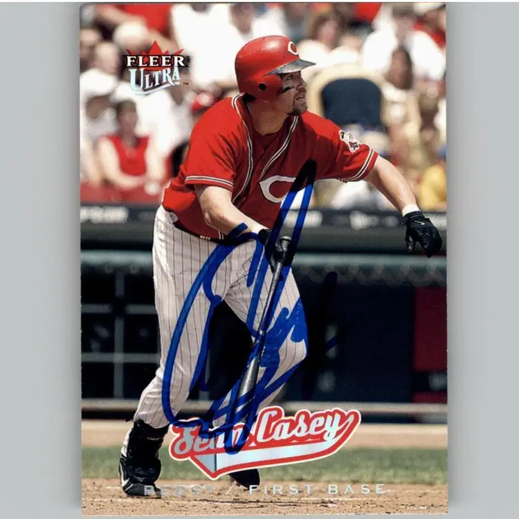 Authentic Fleer Ultra baseball card featuring Sean Casey of the Cincinnati Reds, signed boldly in blue Sharpie. A must-have for Reds fans and autograph collectors. Your purchase supports Signatures For Soldiers in aiding homeless and disabled veterans.