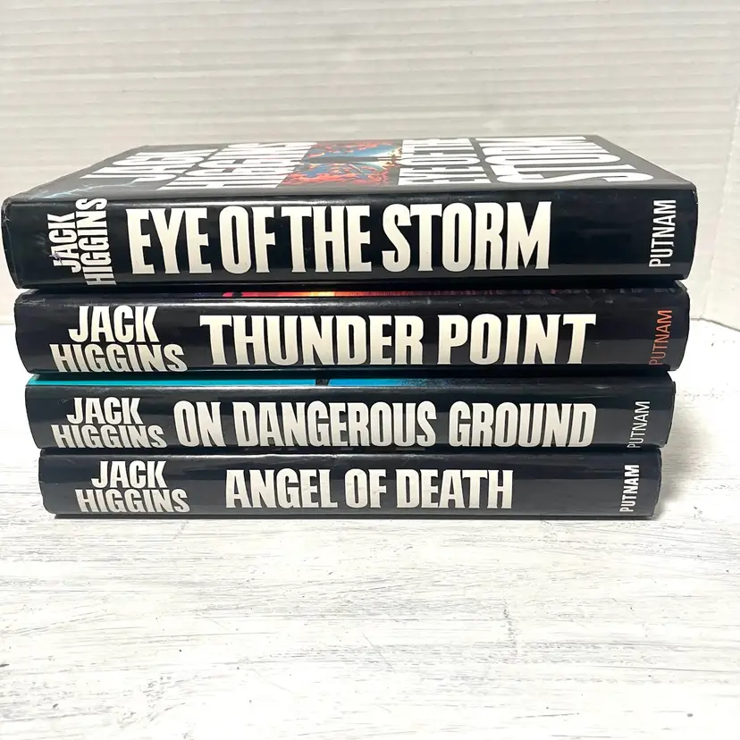 Sean Dillon Series Lot of 4 Books, Jack Higgins Hardcover w/DJ, Putnam 1992-1995. Pre-Owned. Some Shelf Wear at Edges/Corners, Possible light smudges on page edge /or covers, One Volume has a Name Written inside..See Photos. All inner pages in tact & free of writing. Great Starter Lot for Higgins Readers
