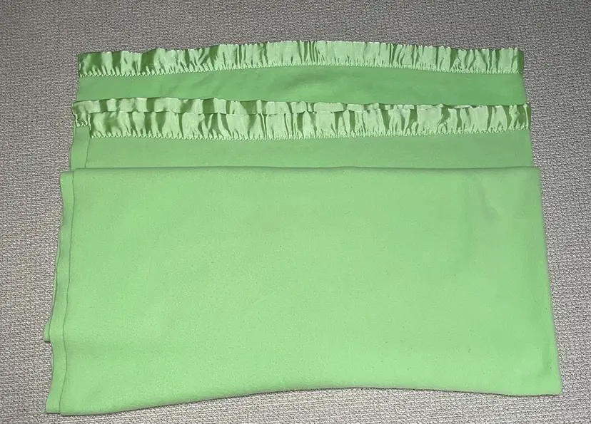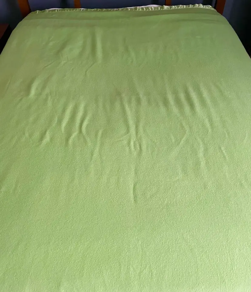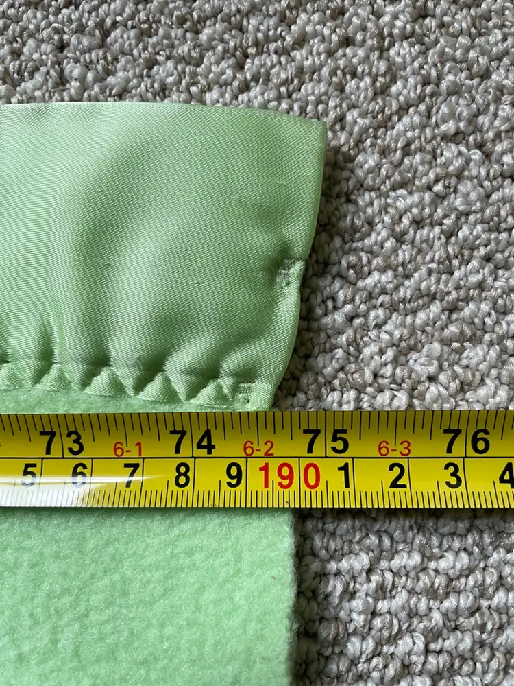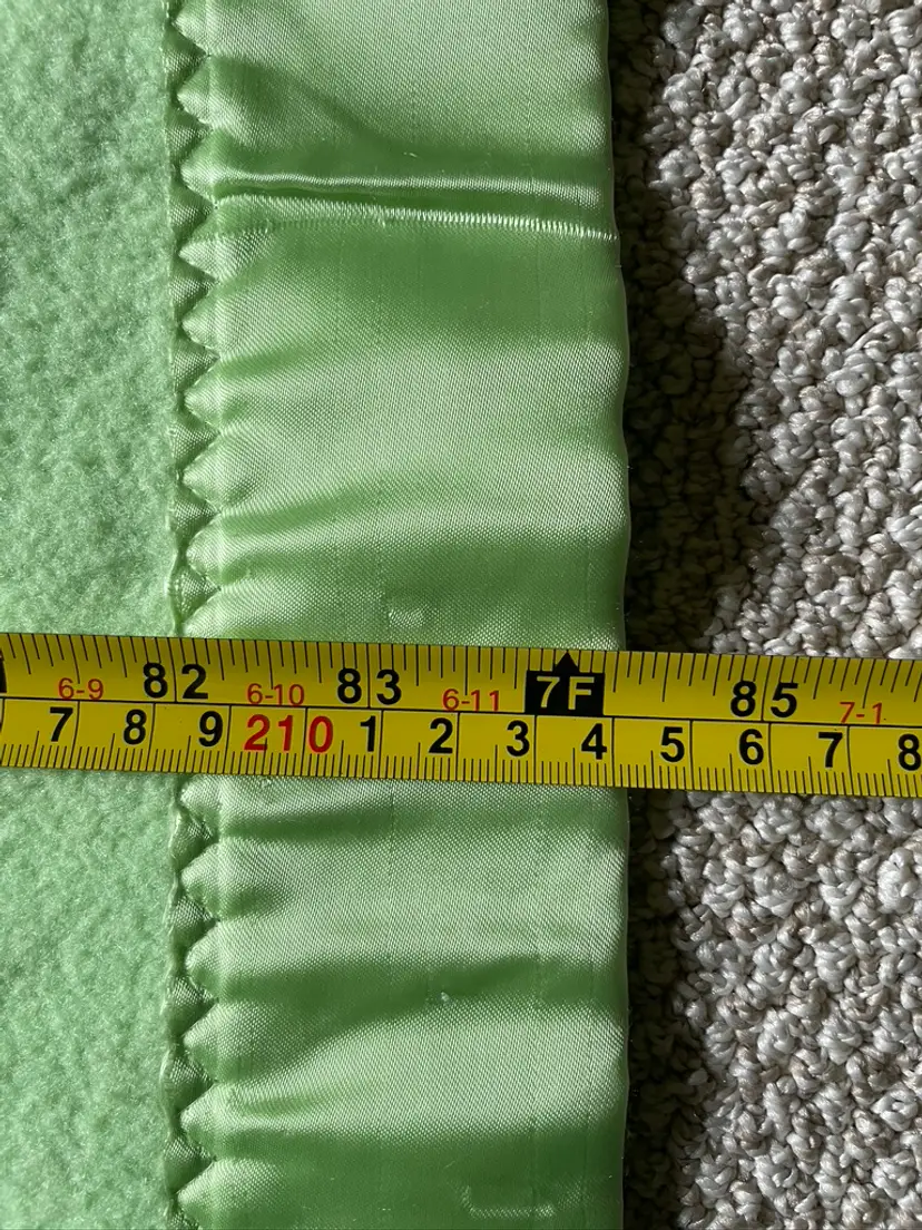 See photos for condition. Blanket measures 84"L x 74.5", which appears to be a California King. I do not have an area large enough photograph the entire blanket in its entirety. From non smoker, non pet owner home. No tears. No rips. No stains. Freshly laundered.