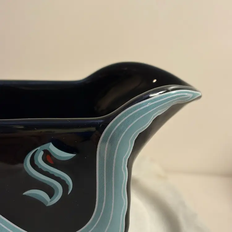 The Seattle Kraken Gravy Boat Hockey NHL SGA Thanksgiving 2025 Exclusive is a must-have collectible for fans of the Seattle Kraken and the National Hockey League (NHL). Officially licensed and featuring the team's iconic blue color, this 14 oz gravy boat is perfect for showcasing team spirit during the regular season. Designed for unisex adults, this unique product is a great addition to any hockey fan's memorabilia collection, proudly representing the Seattle Kraken on Thanksgiving Day 2025.