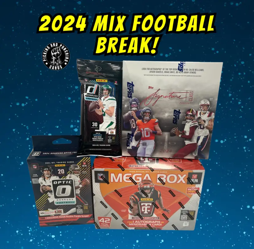 You are bidding on all the cards of the team listed in the title in this 2024 Topps Signature Series Mega, Totally Certified Mega, Optic Hanger, and Donruss Pack Team Auction . Rip will happen on the Dibdit Cards District community on Release Day Wednesday, June 18th at apx 9:30 PM EST / 6:30 PM PST. US Shipping is $5 for your first spot, $.25 each additional spot you win. We ship our breaks cards out at the end of the month or upon request. Any spot won where no cards of the team are found in the box will receive a sealed pack of football product. Any multi-team base cards will be divided as evenly as possible between the subjects on the card; any multi-team HITS (serial # or dual/triple autos or relics) will be assigned by draw to one participant from the participants who own the depicted teams/players.