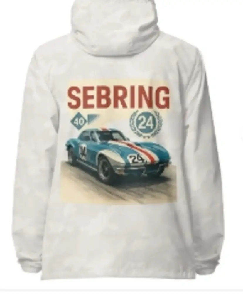 Inspired by Corvette’s legendary Sebring racing heritage, this premium Corvette windbreaker blends vintage motorsport style with modern comfort. Lightweight, breathable, and weather-ready, it features bold Sebring graphics, a relaxed unisex fit, and easy packable wear. Perfect for car shows, race weekends, cool cruising nights, and everyday Corvette lifestyle wear.