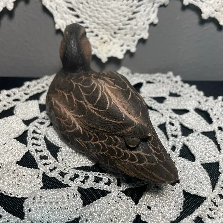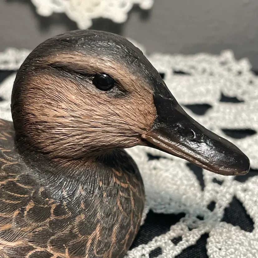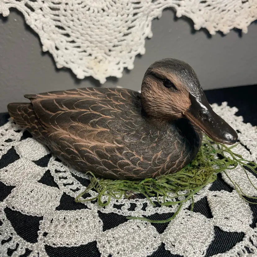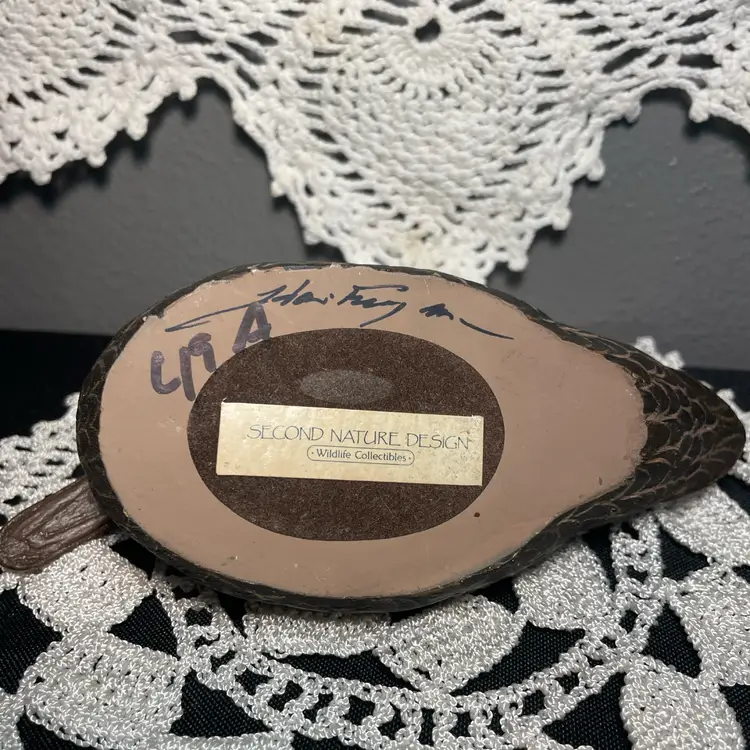 Vintage Second Nature Design duck figurine from the Wildlife Collectibles series. This realistic mallard-style decoy features detailed feather carving and natural earthy tones, perfect for rustic, cabin, or lodge-style decor.