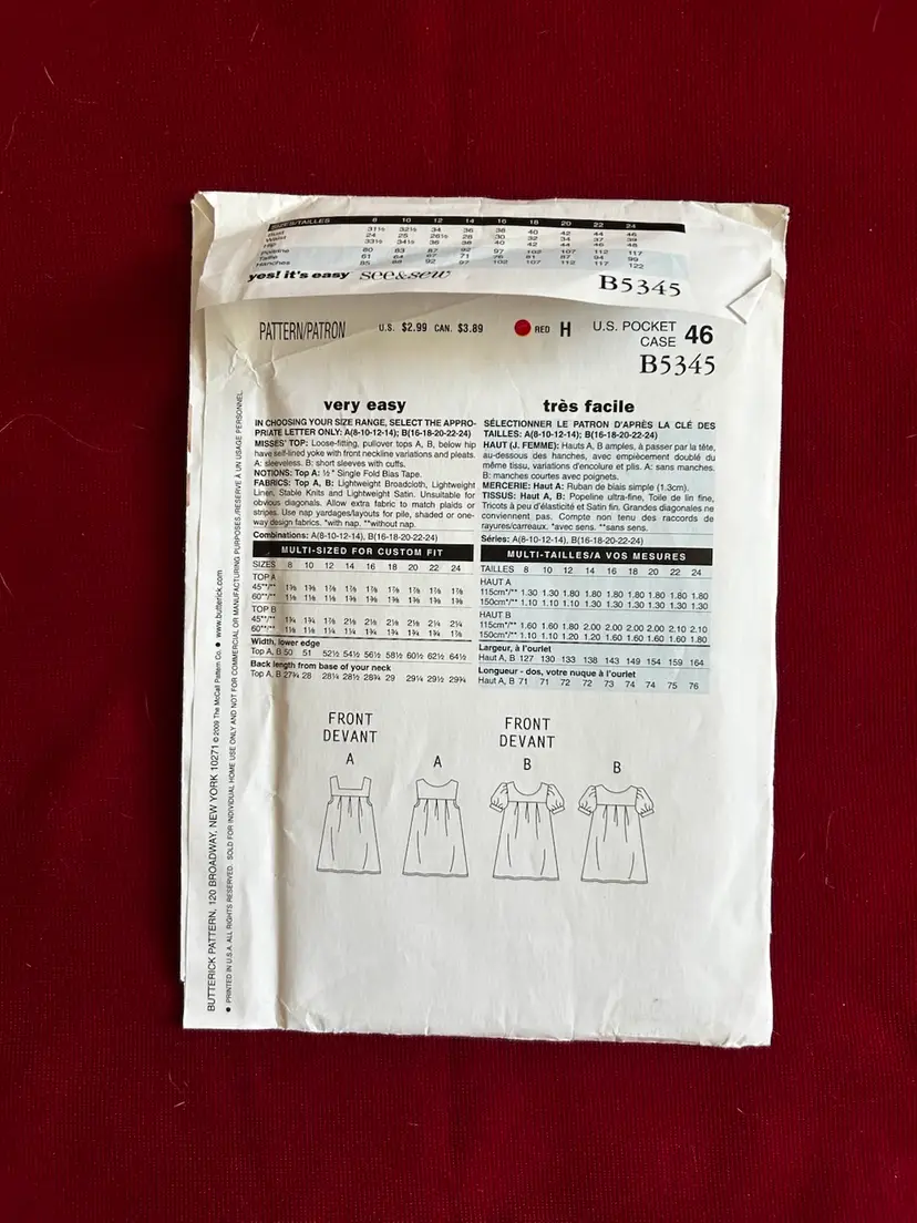 See & Sew Pattern B5345 Blouse 2 ways Uncut FF Plus Size 16-18-20-22-24 Please see photos for condition. Let me know if you have any questions. Single item offers in bundle item offers seriously considered. Thank you for stopping by.