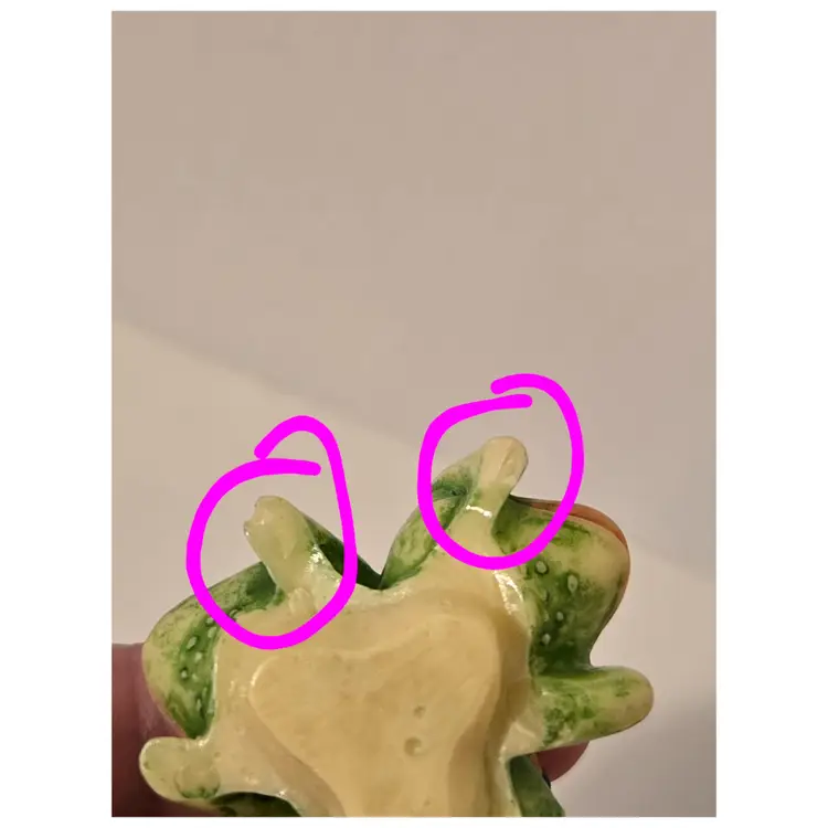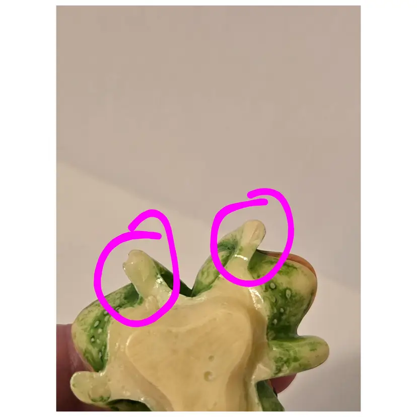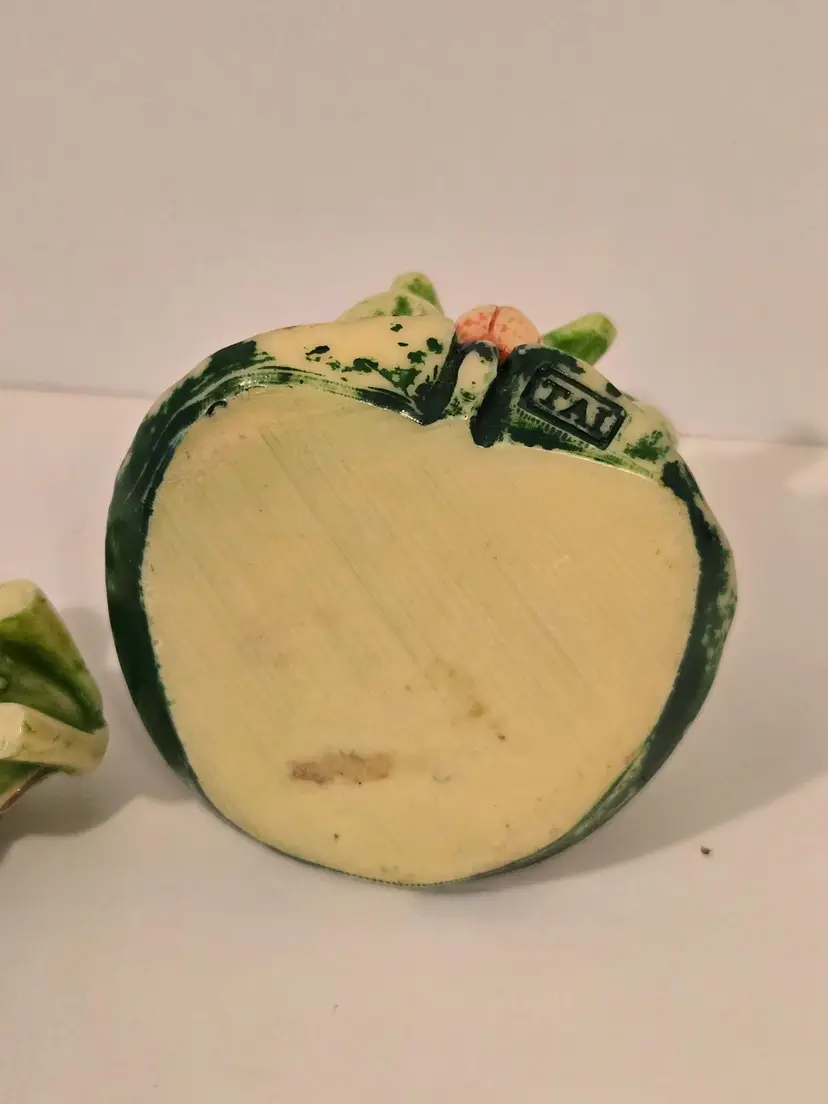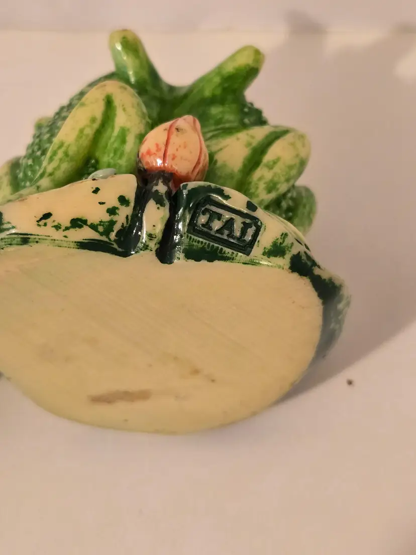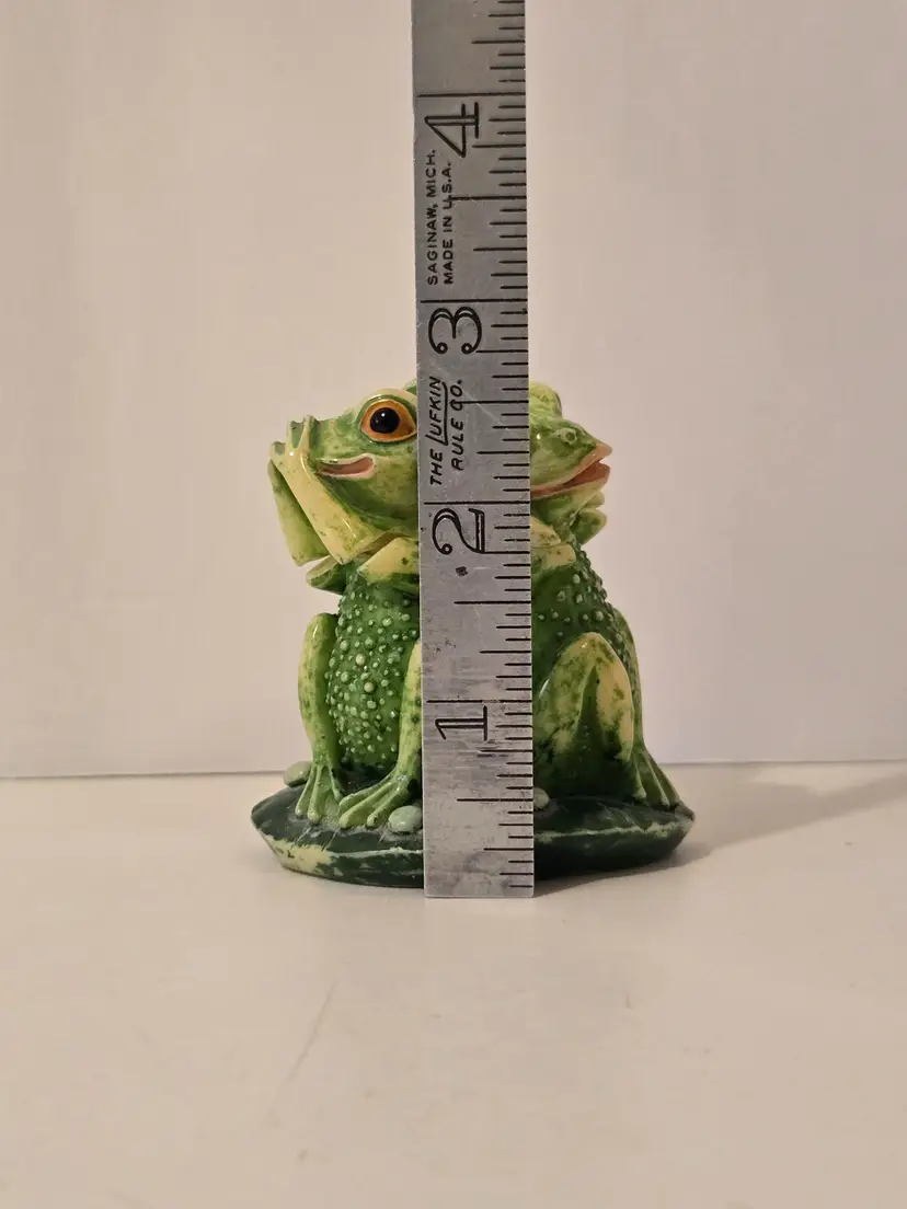 This charming trio of frogs is here to remind you; see No Evil, hear No Evil, speak No Evil. The trinket box measures approximately 3.6×2.5 inches. There are chips on the arms of two of the frogs, please see last photo. The box is marked TAI.
