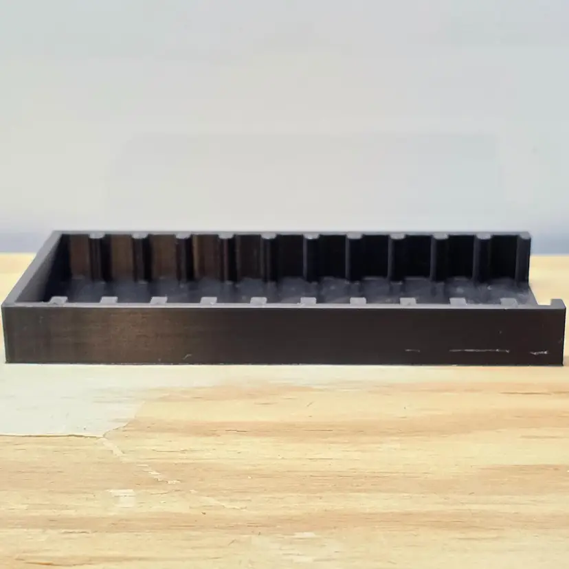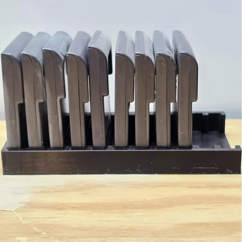 Sega Game Gear - Video Game Storage Tray. This storage tray holds 11 Games. All game trays are designed to fit nicely on a 6" shelf or fit nicely on a 12" deep shelf when using 2.