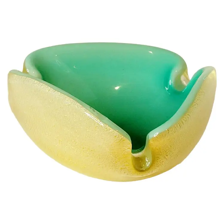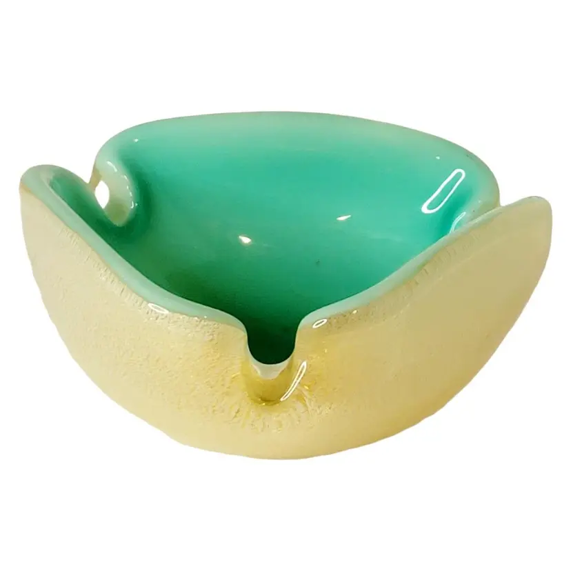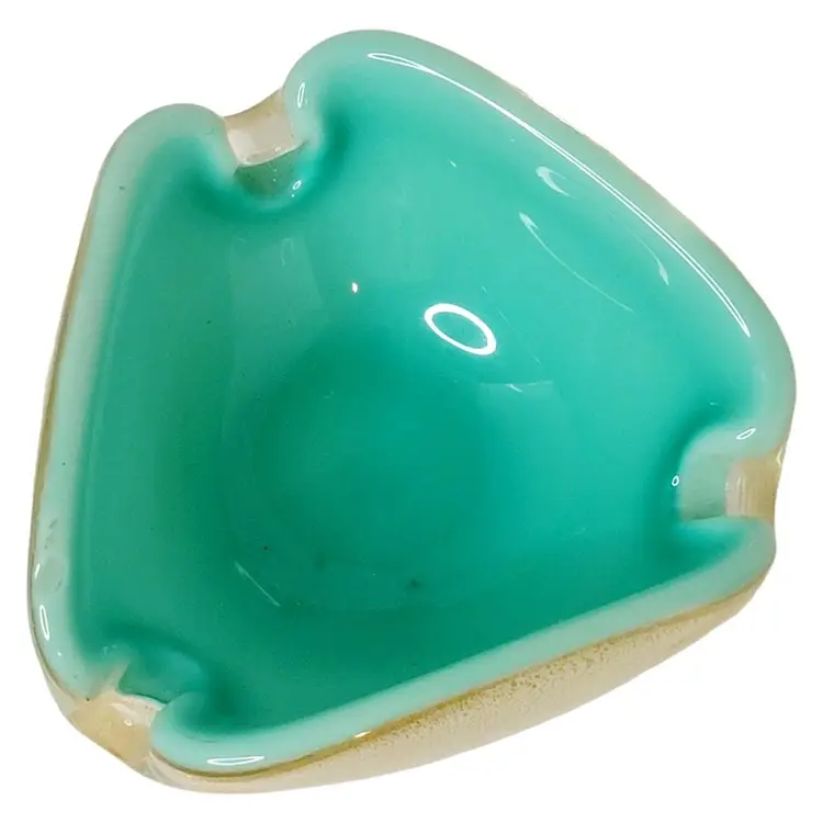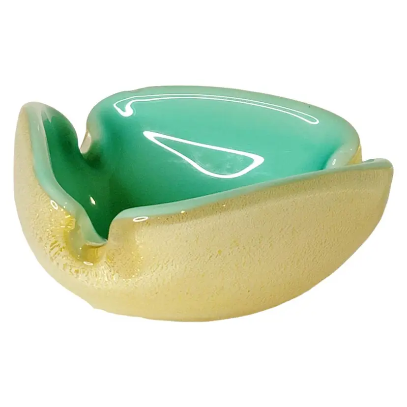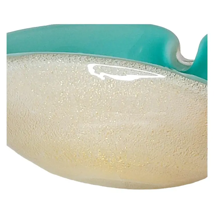 Seguso Murano Aqua Green Celadon Gold Flecks Italian Art Glass Dish Bowl Ashtray 5" long 6" wide 2.5" tall