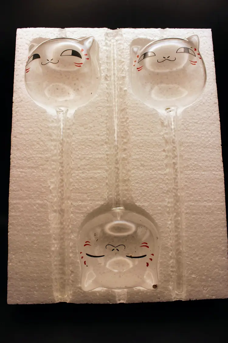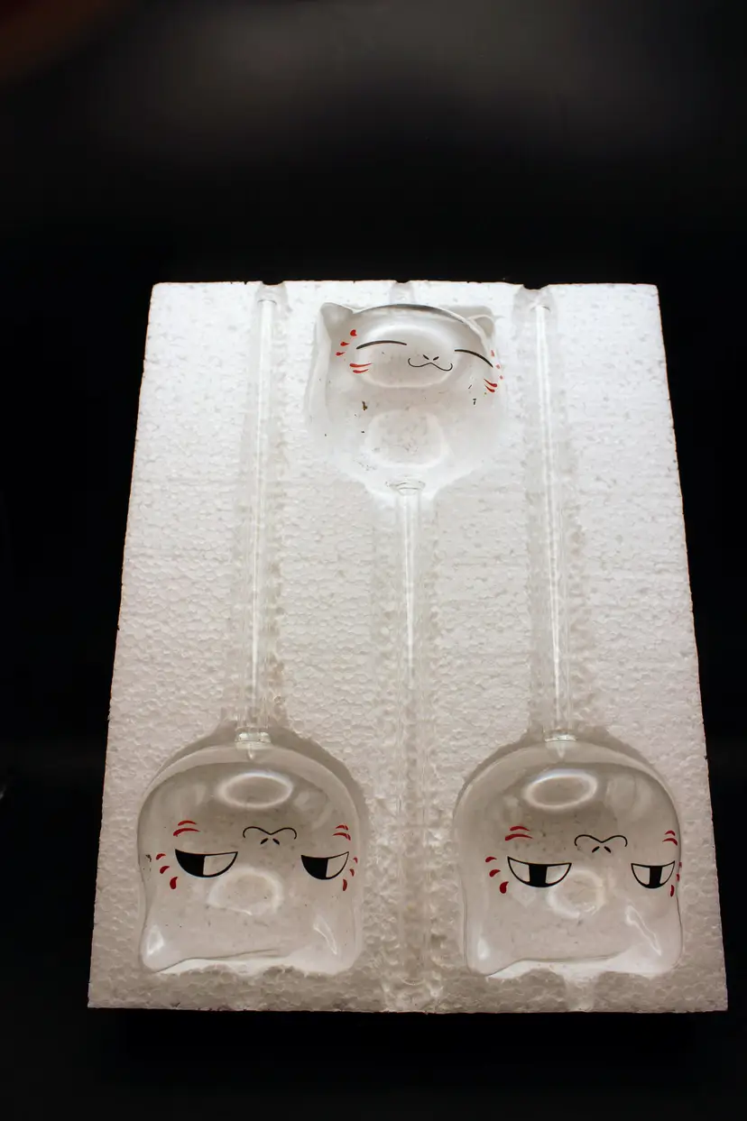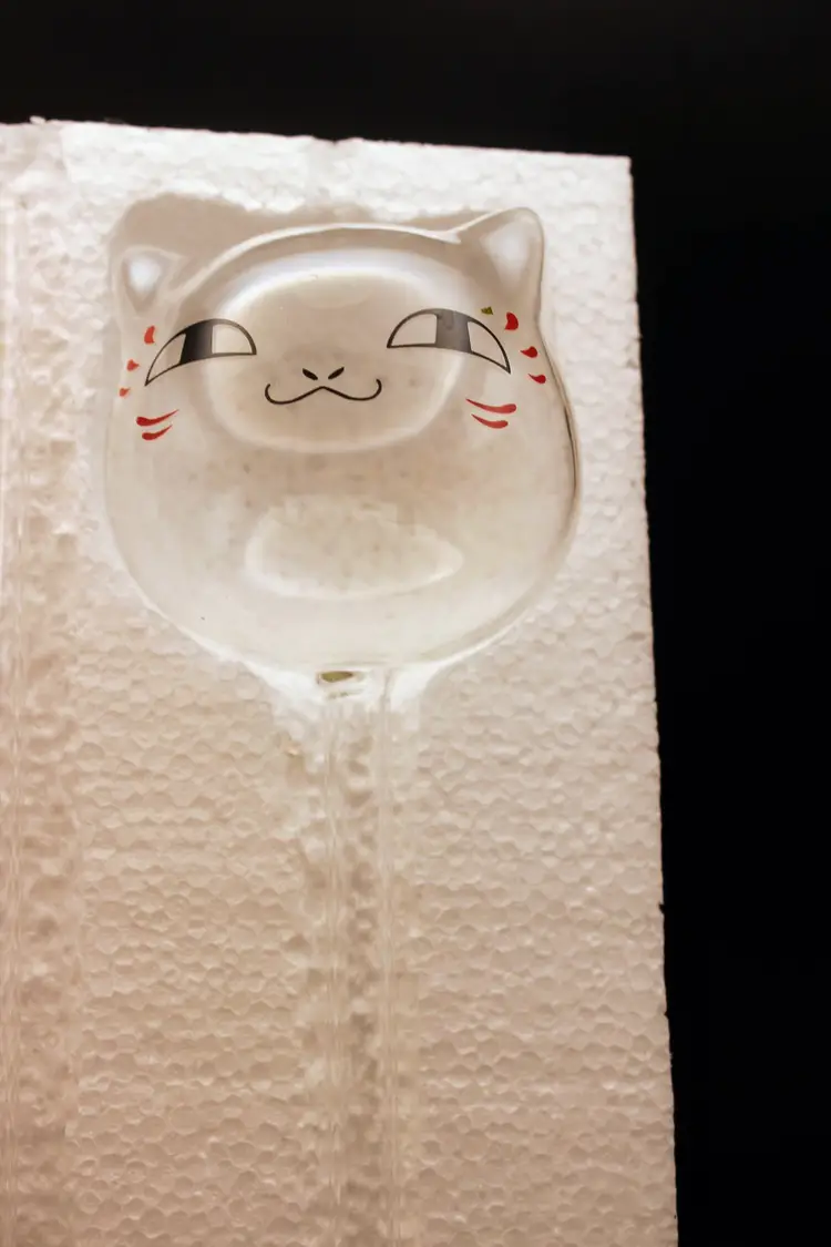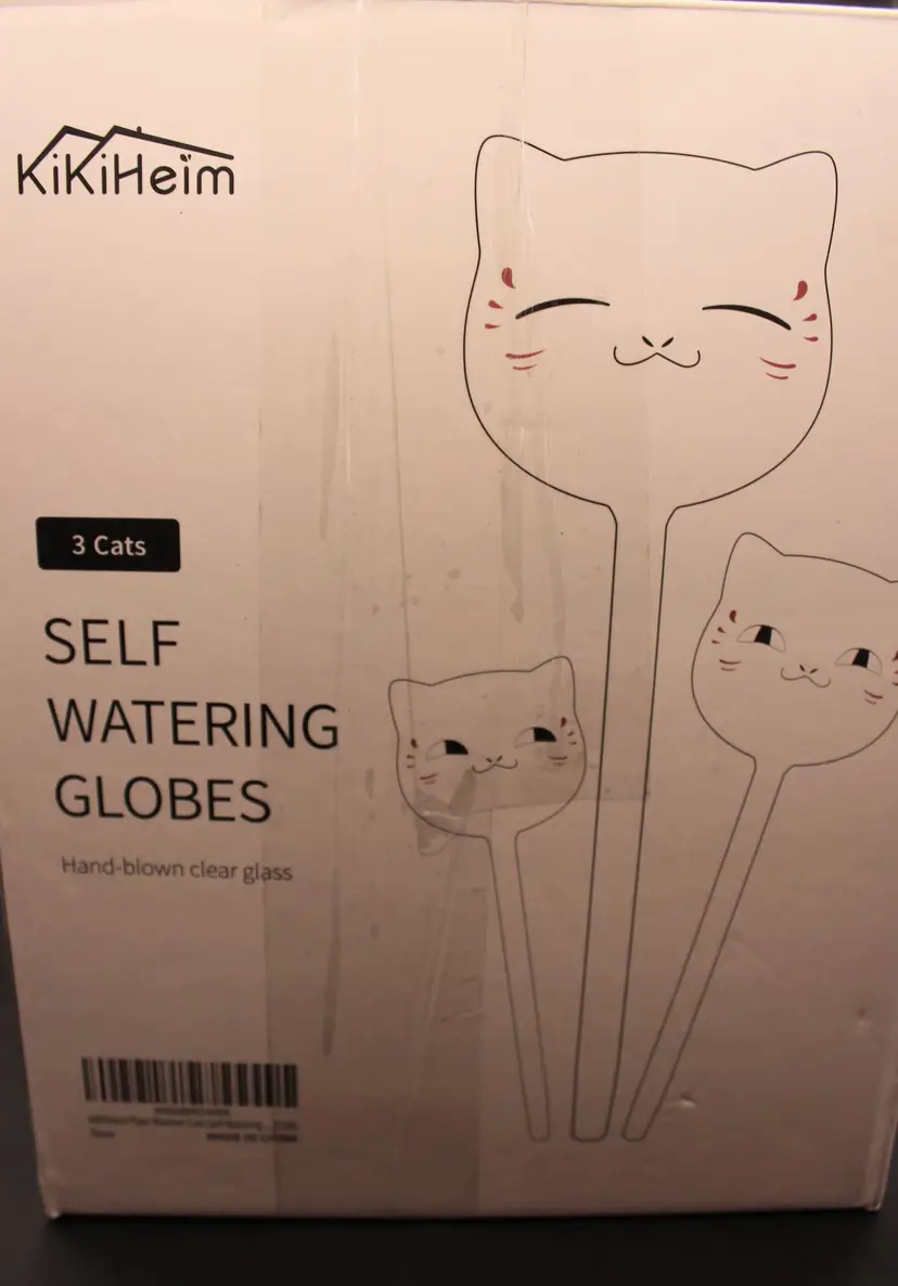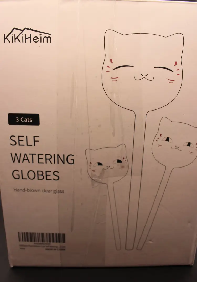 Set of 3 Glass Watering Globes in original box. Perfect for your indoor plants. Briefly used. In good condition. Cute Kitty Cat faces Calling all plant lovers!