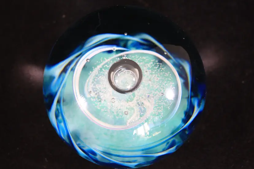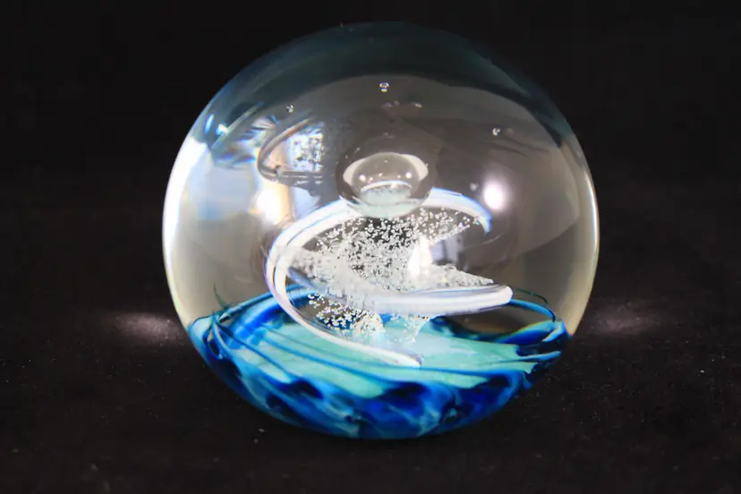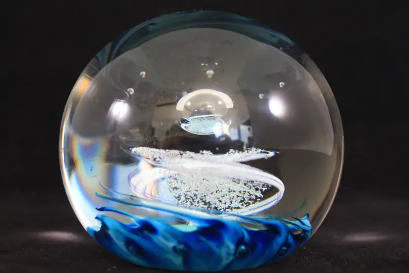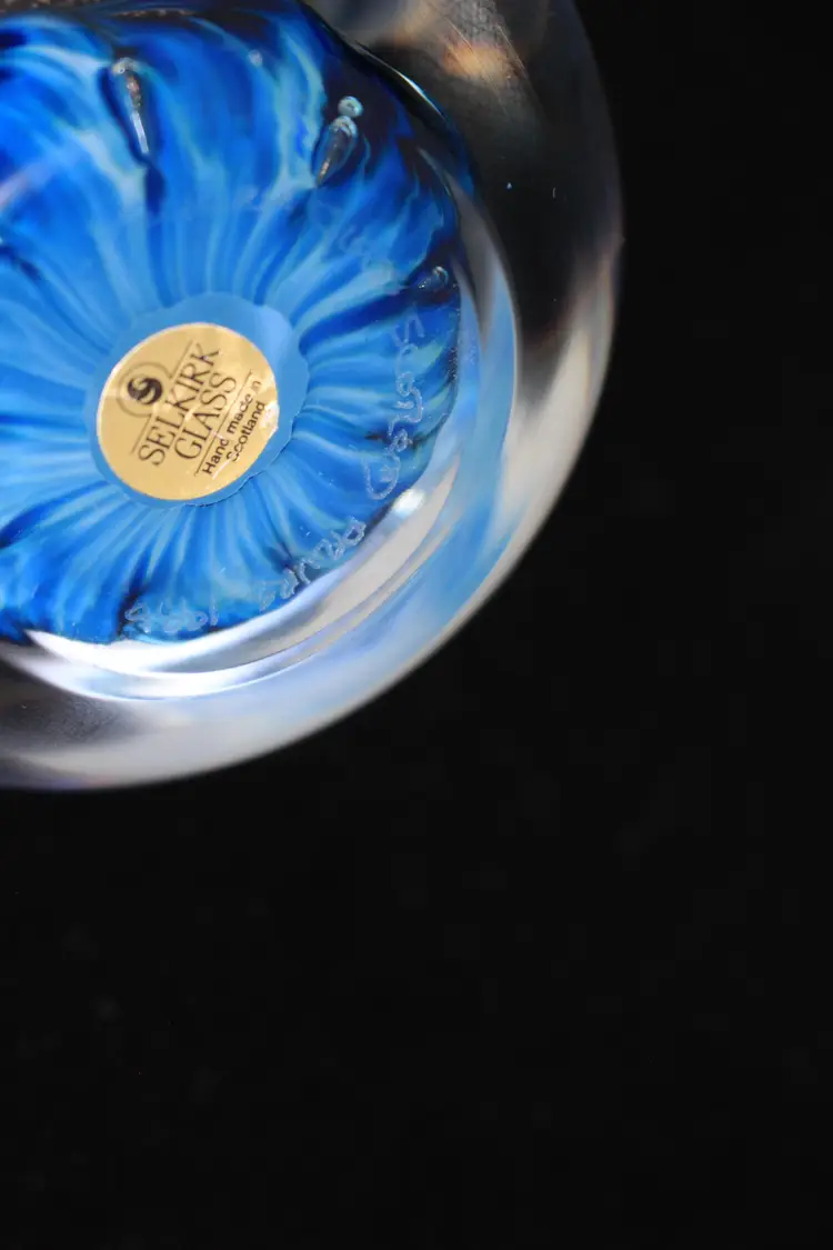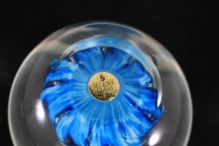 Selkirk Glass Scotland 'Azure' 1996 Blue & White Swirl Art Glass Paperweight