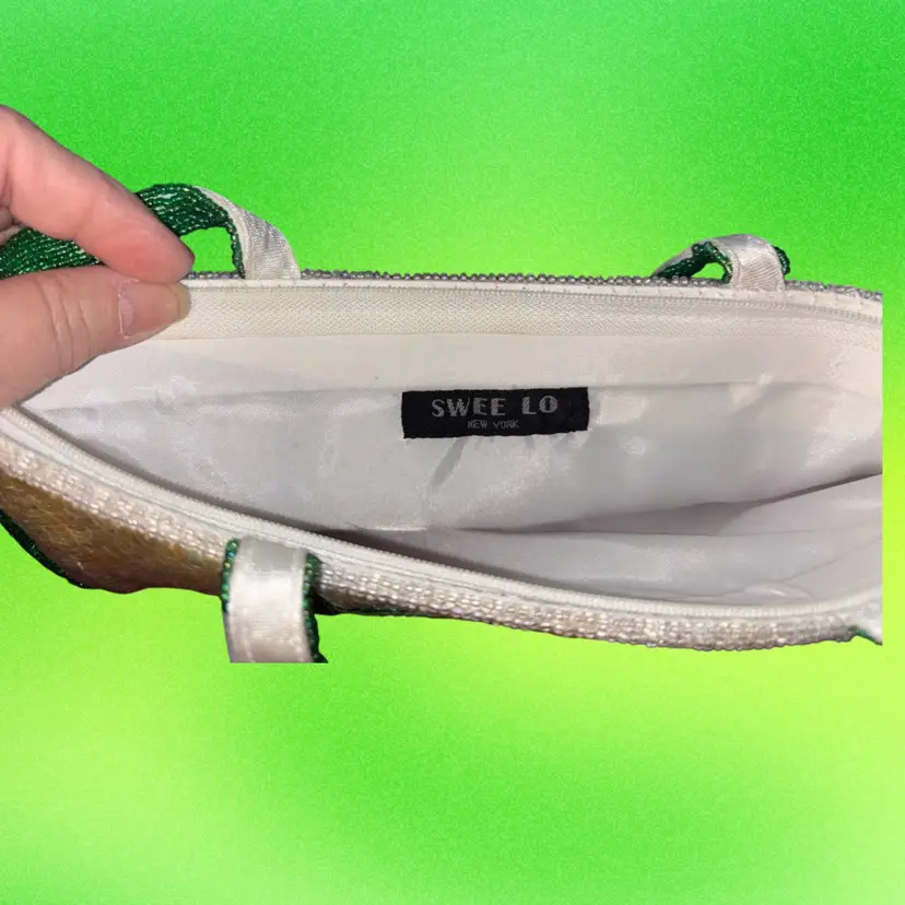 Based on the visual evidence, this is a Swee Lo New York sequined palm tree bag.