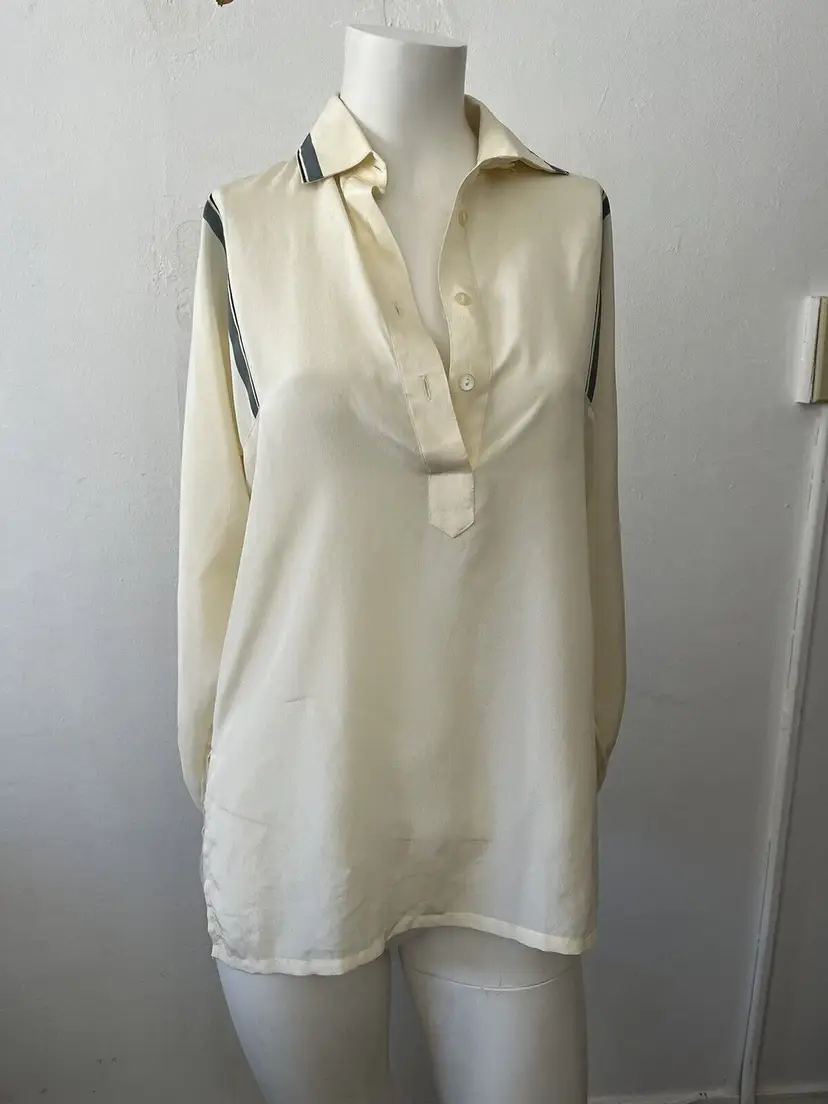 Pattern: Solid Sleeve Length: Long Sleeve Character: does not apply Neckline: Collared Closure: Pullover Size: S Color: Ivory Sleeve Type: Casual Sleeve Material: does not apply, Polyester Fabric Type: Down Accents: Logo Vintage: No Fit: Regular Brand: Cream Size Type: Regular Department: Women Type: Shirt Style: Tunic Theme: Outdoor Features: Breathable, Non-Iron