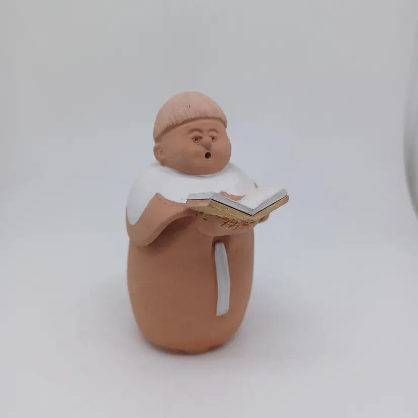 Vintage Sermar Chile folk art figurine of a man in the choir singing. Made out of terra cotta clay. Measures approximately 4” in height