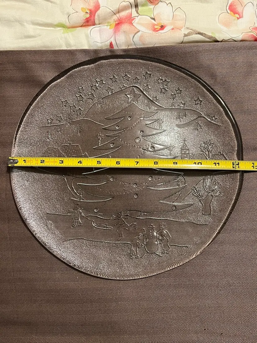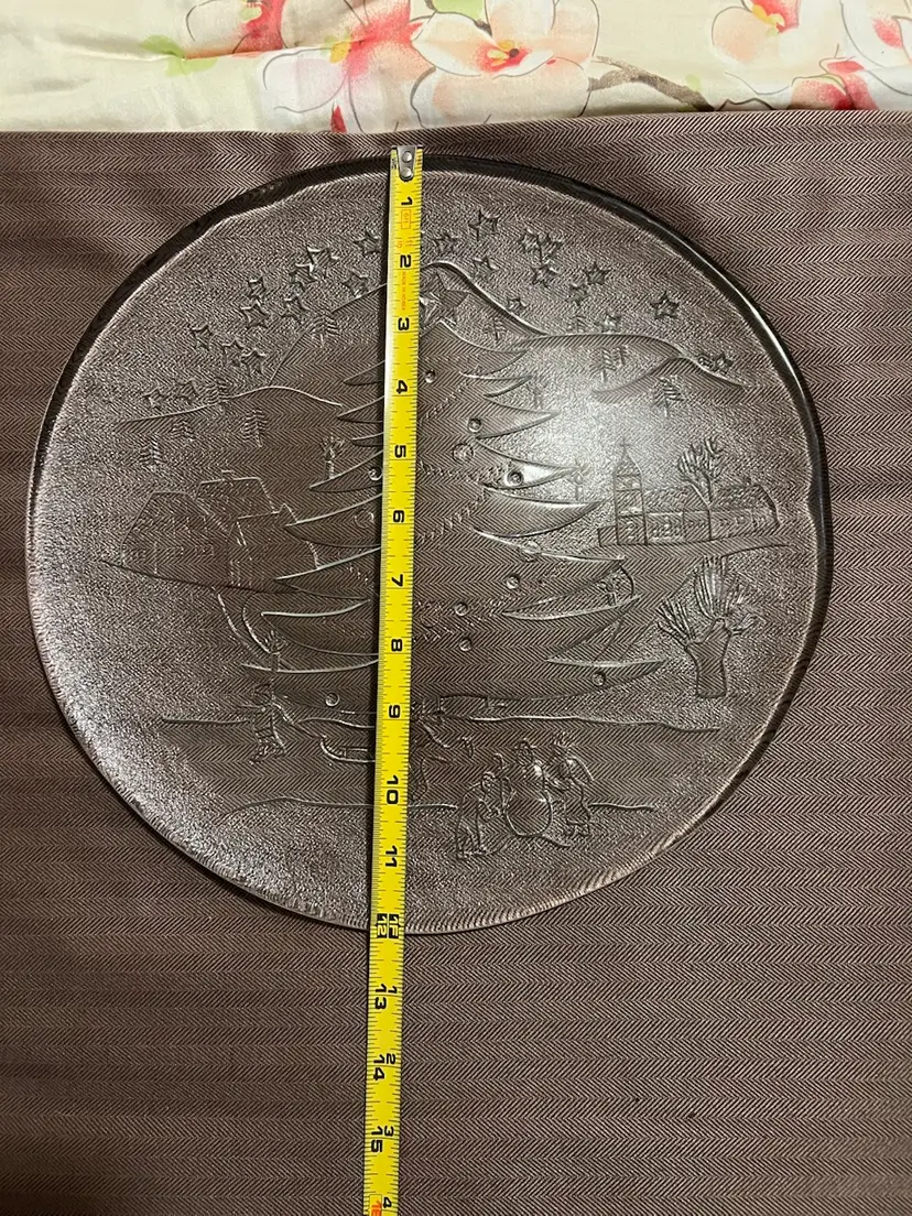 Serving Dish Cookie Platter Glass Embossed Christmas Tree Stars