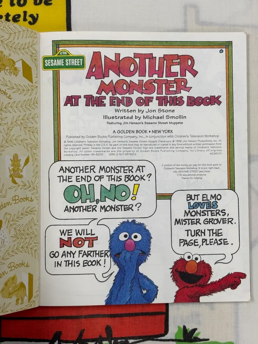 Join Elmo as he turns the page, looking for the monster! Hardcover Golden Book, published in 1996. Has some minor wear due to age as seen in the photos. Otherwise this book is in very good condition. Add this bit of nostagia to your collection or share it with a kid you love.