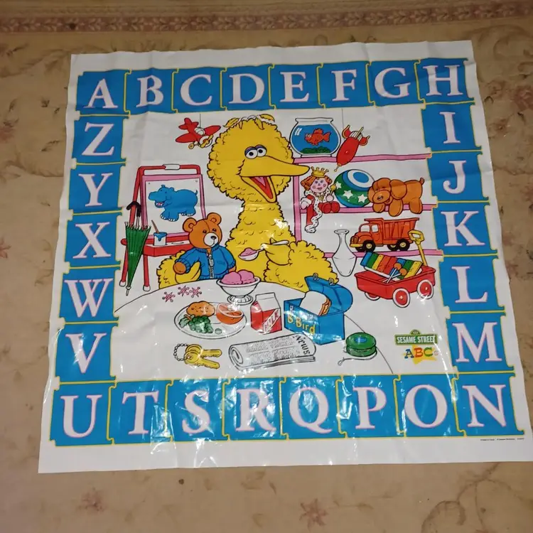 Sesame Street, Mail Order Vinyl Playmat, play mat, Big Bird, Vintage, Alphabet, ABC, Baby ~Awesome vintage playmat made of plastic. Probably 1980s. Clean, smoke free. Measures 46x46". Great for a table cloth or play mat. Item will be mailed in a padded mailer to help you save on shipping