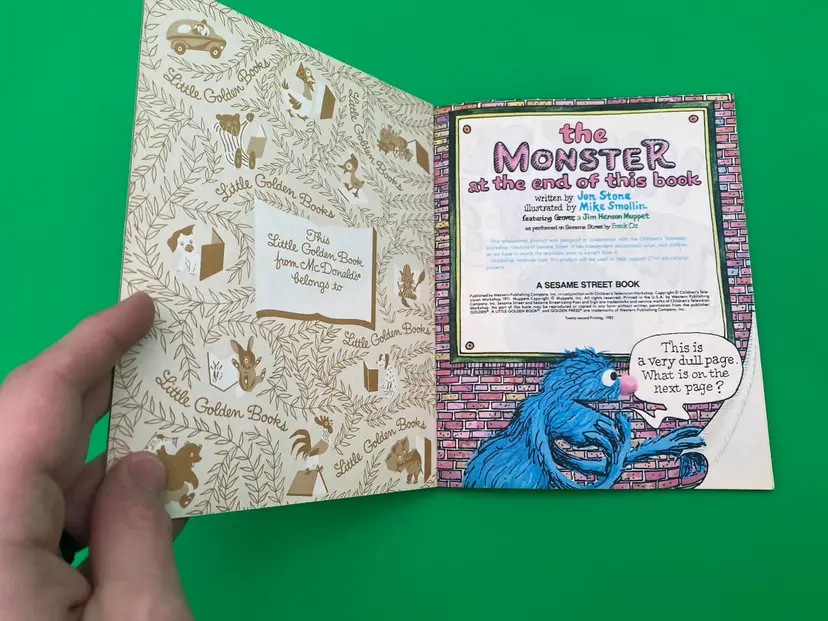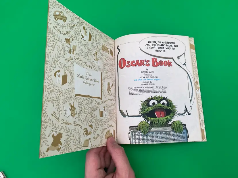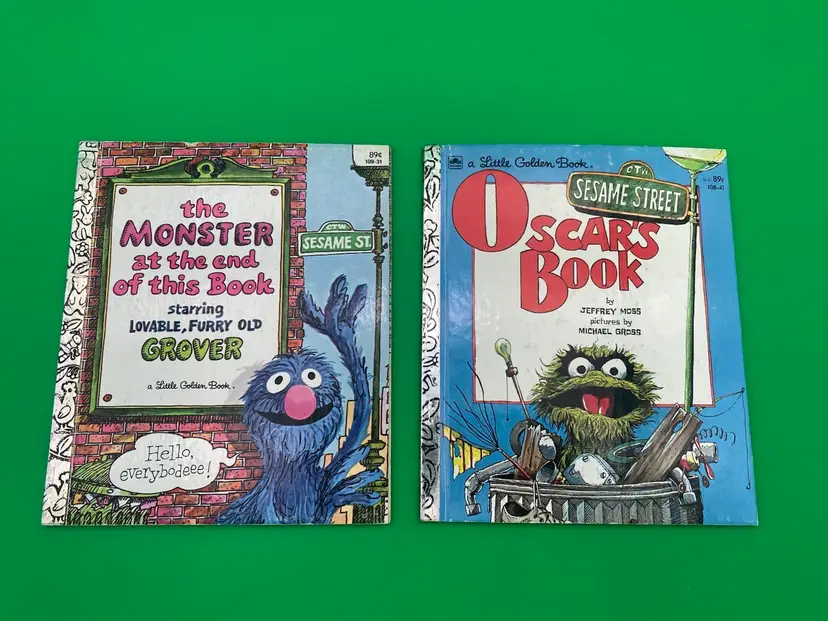 You are purchasing a pair of Sesame Street Hardcover Children's Books by Western Publishing and their Little Golden Books collections. This Listing includes one Oscar's Book from 1975 and one The Monster at the End of this Book from 1982. These Books are in overall good condition. See images for minor Cover wear. No issues with the Bindings and no Pages have rips, stains, folds or writing.