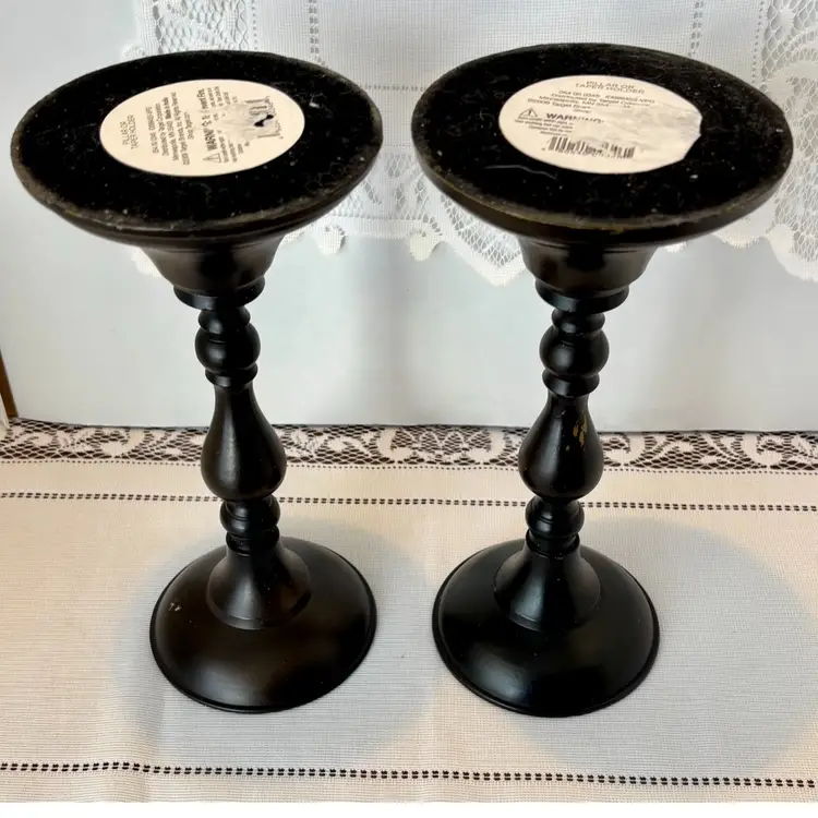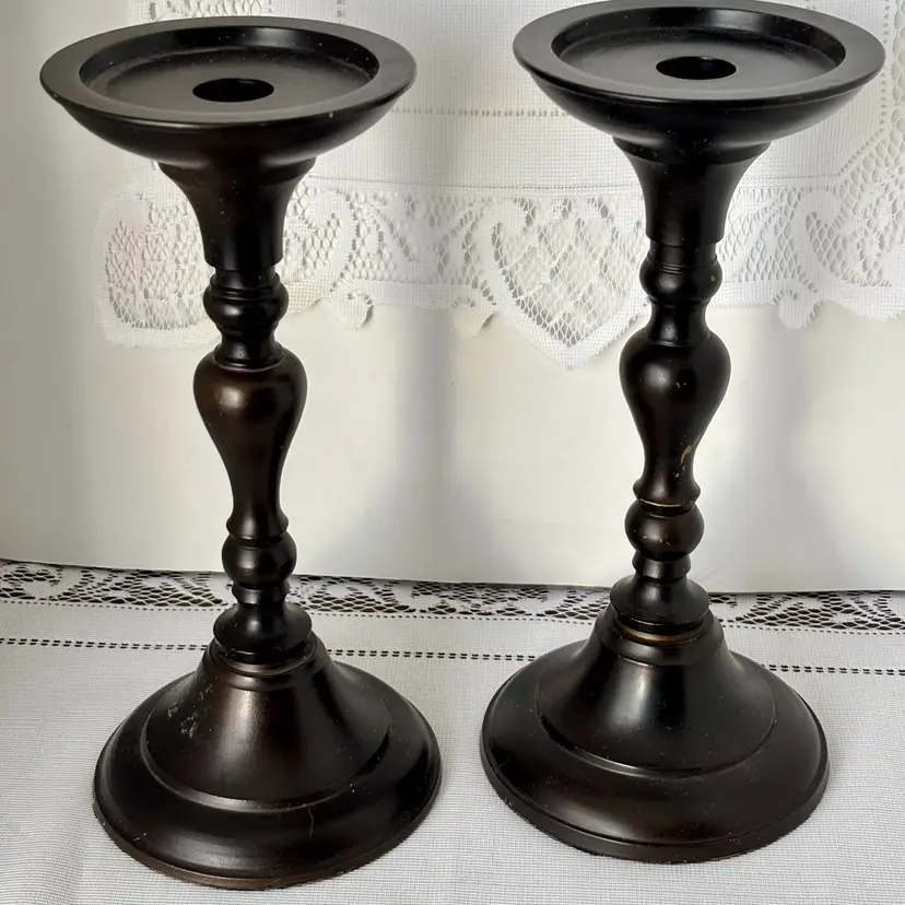 Elegant sturdy stay in place metal candle holders that will hold either a pillar candle or a tall taper candle