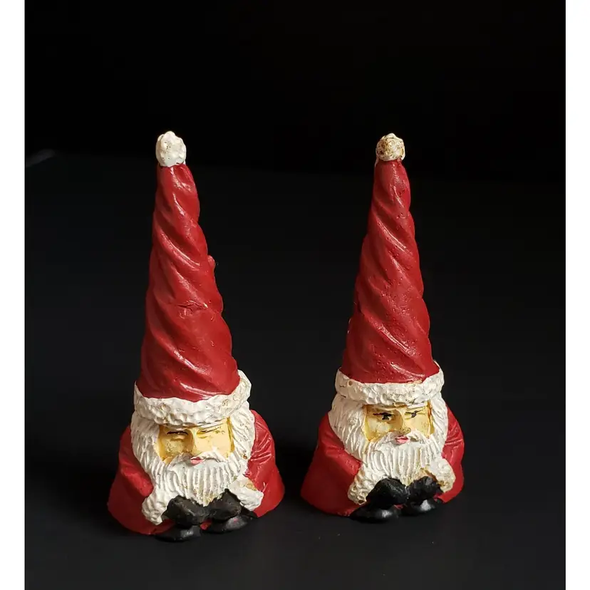 Set of two adorable vintage Santa Claus brooches. Each measure approximately 1.75" tall. One has eyes opened and one has eyes closed. Good condition.