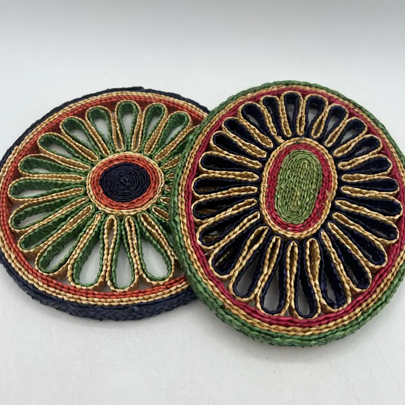 Set 2 Vintage Rattan Woven Trivets Boho Wall Decor Glowers Colorful 8"
