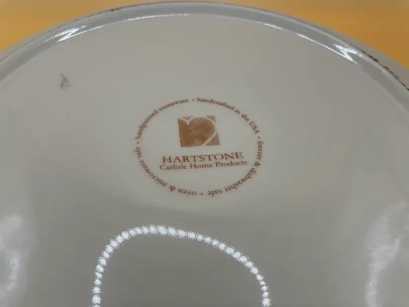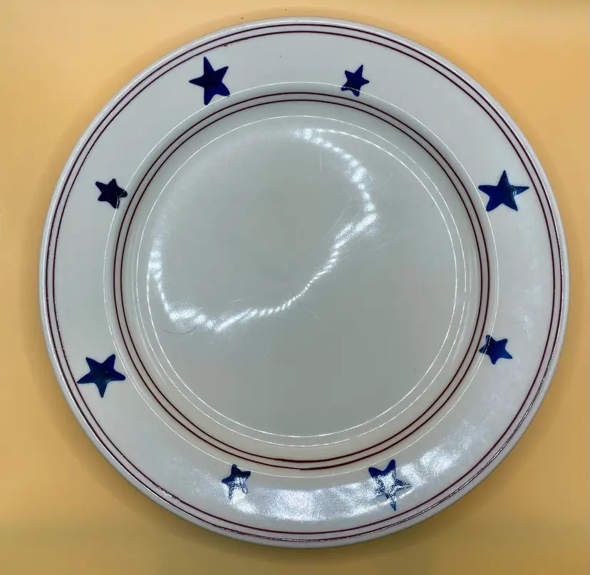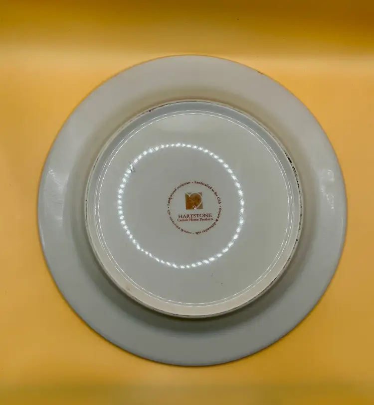 No chips or cracks. Light utensil marks. Some of the lines are painted unevenly. Please review pictures closely, and msg me with any questions. Check out my other listings for more unique items. Thanks for looking!