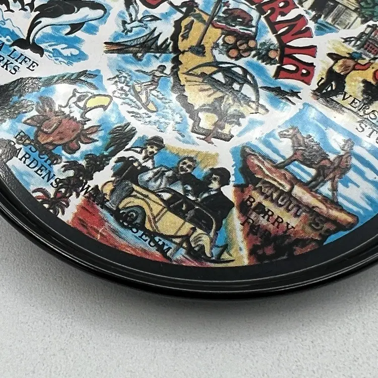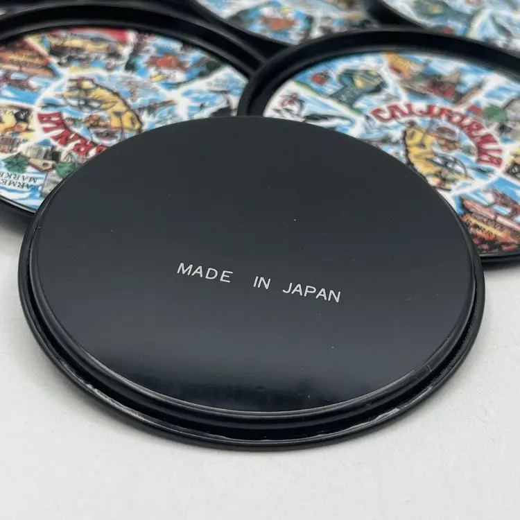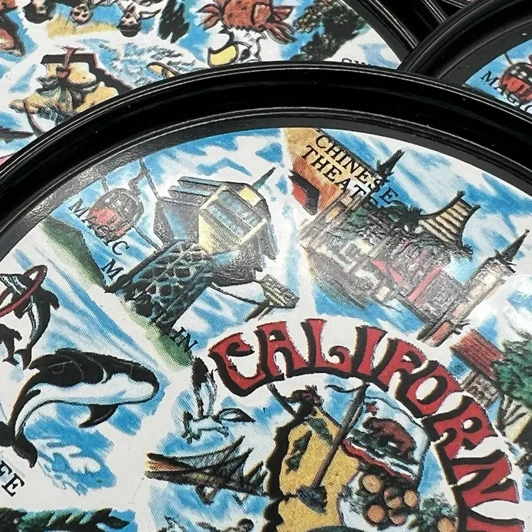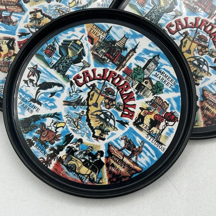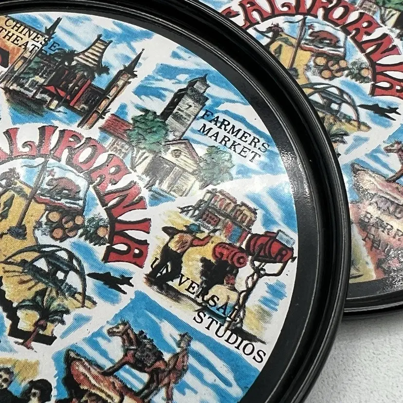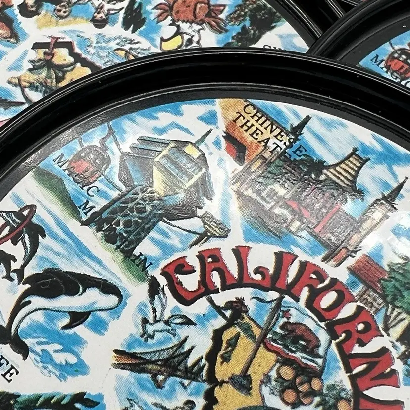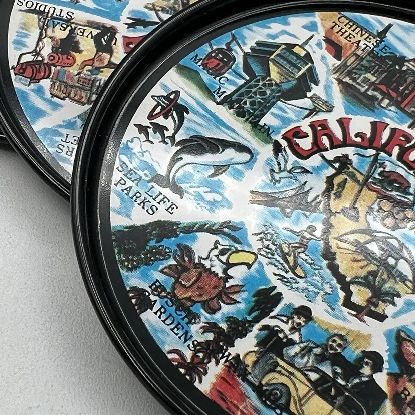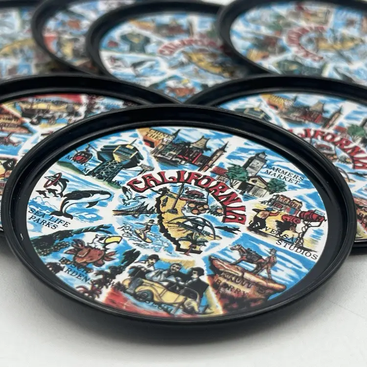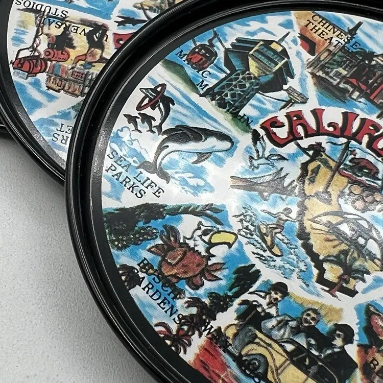 Set 8 Black Metal California Souvenir Drink Coasters MCM Magic Mountain Map 3"