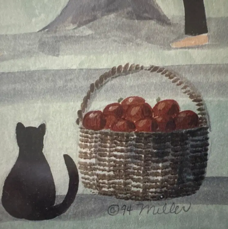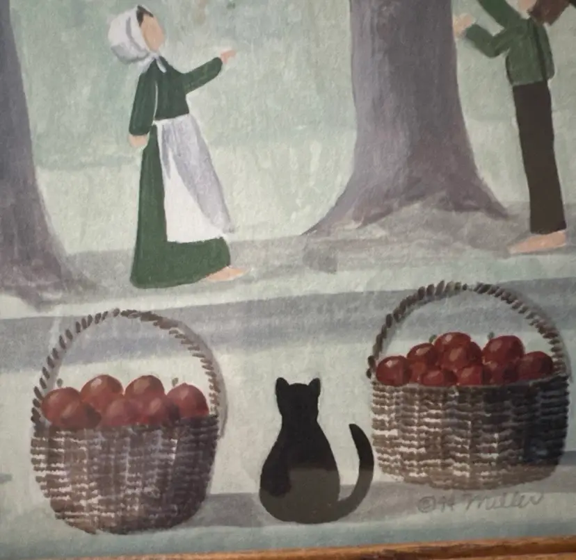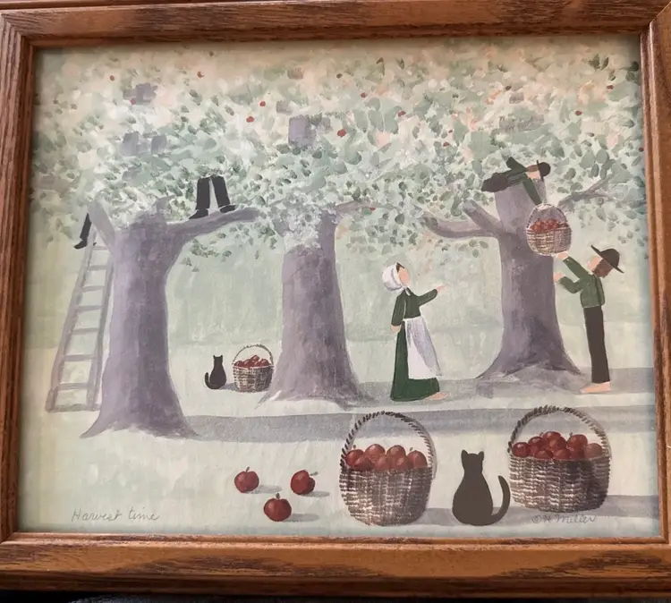 This set of framed watercolor art by artist Miller from 1994 features a charming Amish scene with a cat, titled "Havest Time And October Love." The medium-sized painting is signed by the artist and depicts a contemporary subject with a unique theme. The watercolor painting technique adds depth and texture to the piece, showcasing the artist's talent and style. Made in the United States, this framed art set is a beautiful addition to any art collection or home decor.