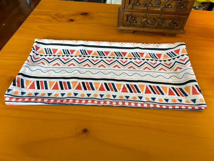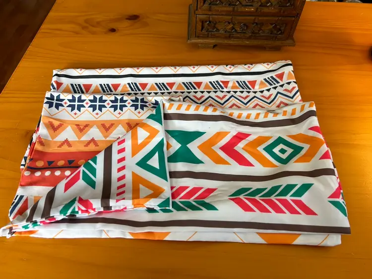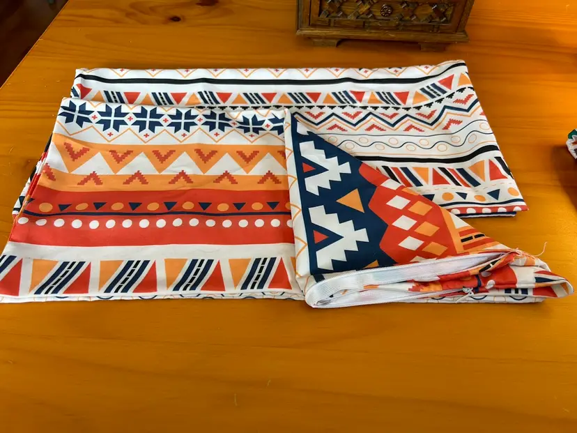 Approximately 18” square. No stains, zippers work well. 70's-80's patterns.