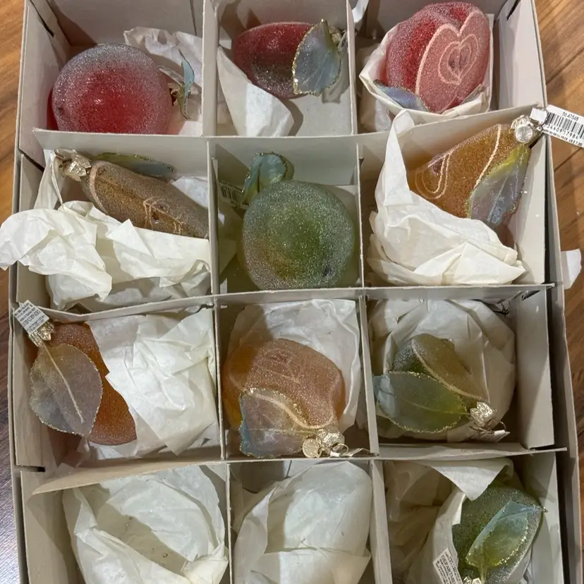 Set Of 10 Sugar, Glazed Fruit, Christmas Ornaments