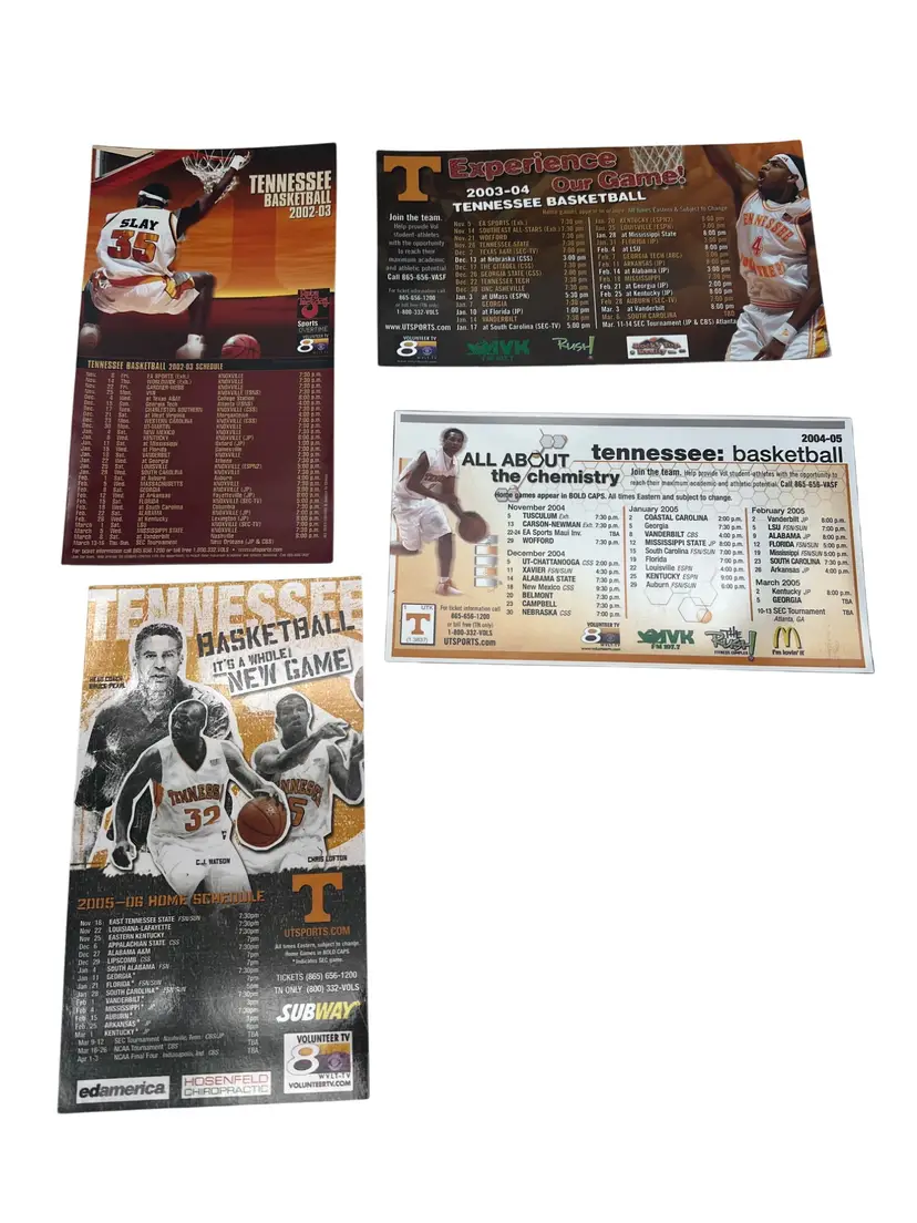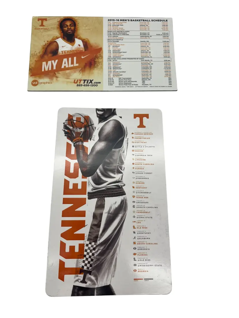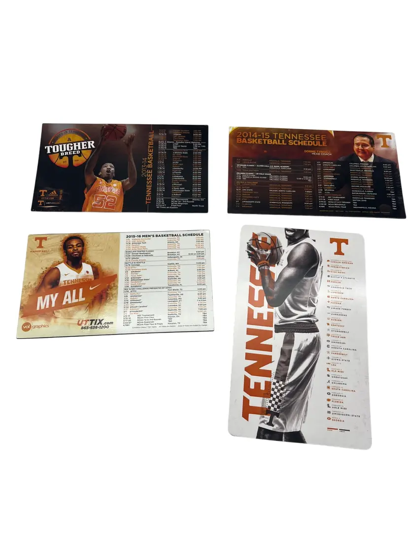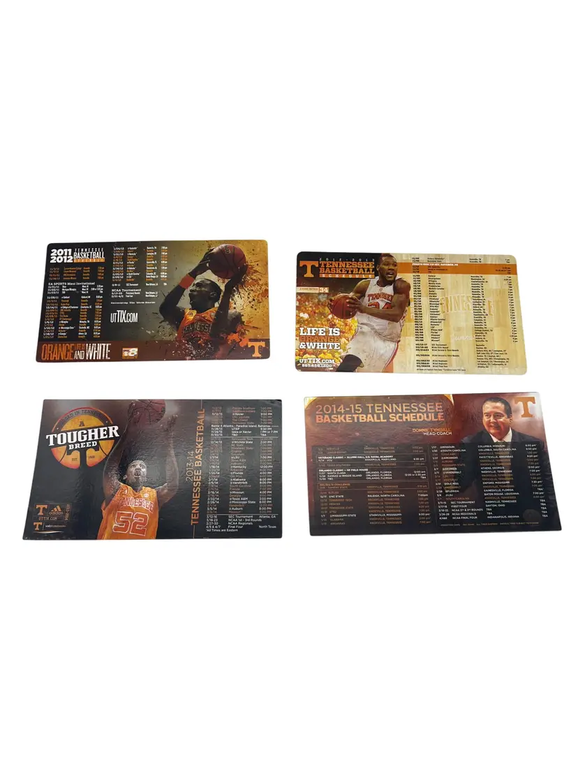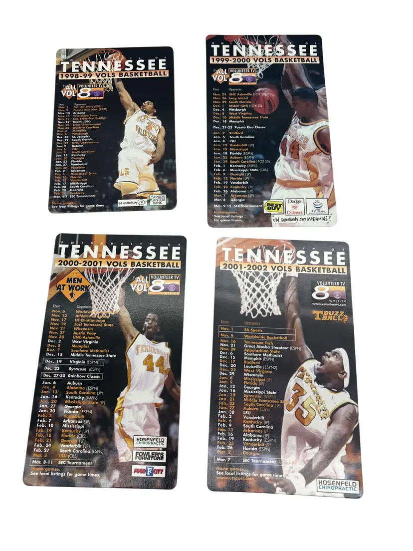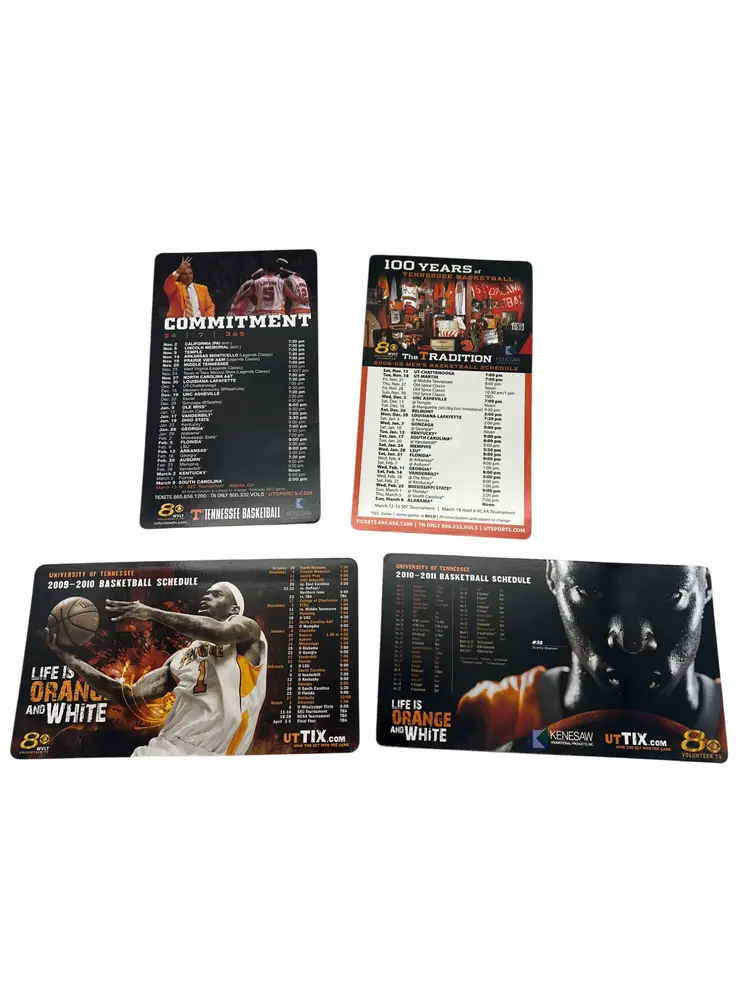 This collection features 18 Tennessee Volunteers basketball schedule magnets spanning the 1998-99 to 2017-18 seasons, with the exceptions of 2006-07 and 2016-17. Each magnet showcases the season's schedule and is a perfect addition for any UT Vols memorabilia collector or fan. These magnets offer a nostalgic glimpse into two decades of Tennessee basketball history.