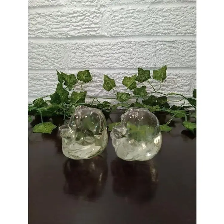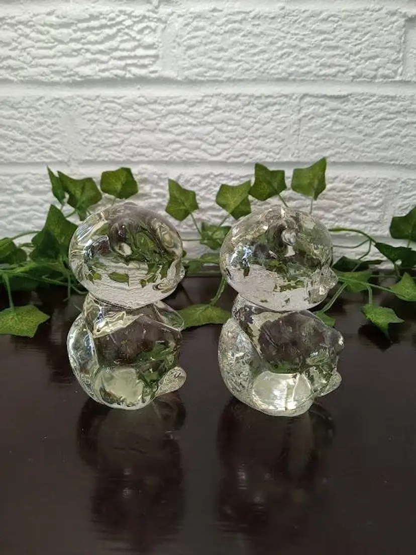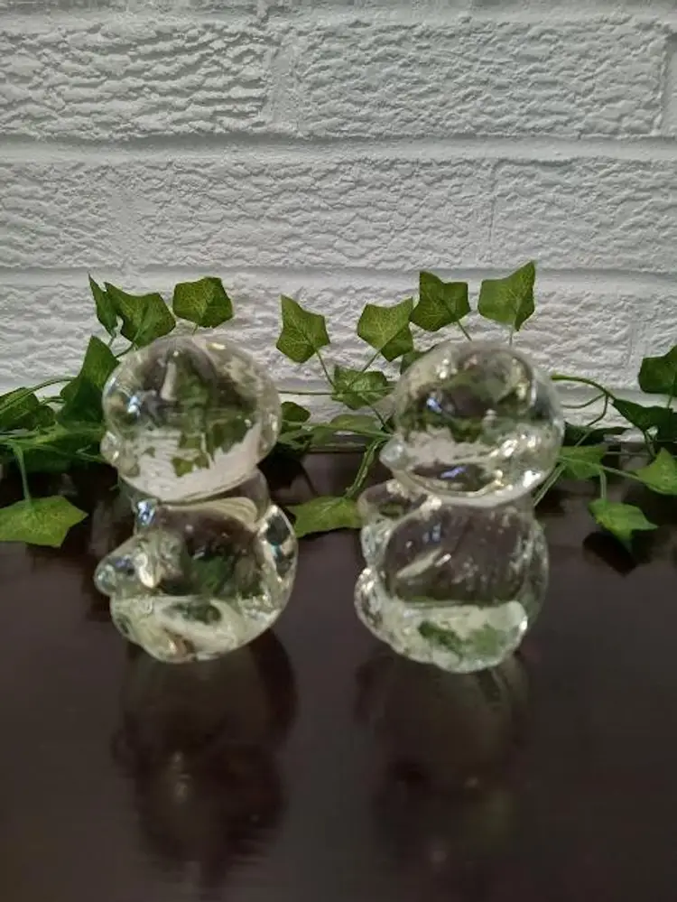 Set of 2 3.5" Clear Glass Teddy Bears Figurines Paperweights some bruising DD