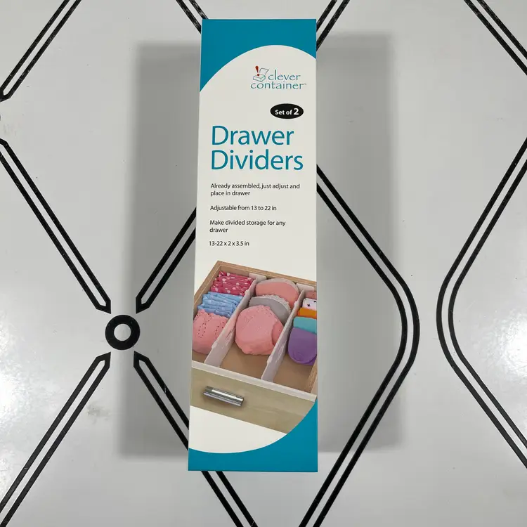 Transform cluttered drawers into organized sanctuaries with this set of two Clever Container Drawer Dividers. These versatile organizers adjust effortlessly from 13 to 22 inches, fitting seamlessly into any drawer to create custom compartments. Imagine the satisfaction of finding your socks neatly paired, your undergarments perfectly separated, or your office supplies readily accessible, all thanks to these clever dividers. Ideal for bedrooms, dressers, craft rooms, or kitchen drawers to bring order to everyday chaos.