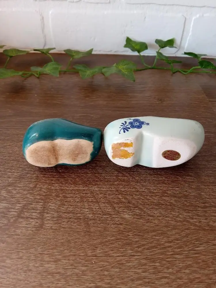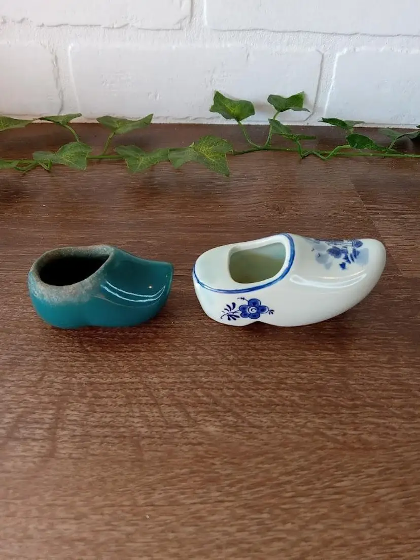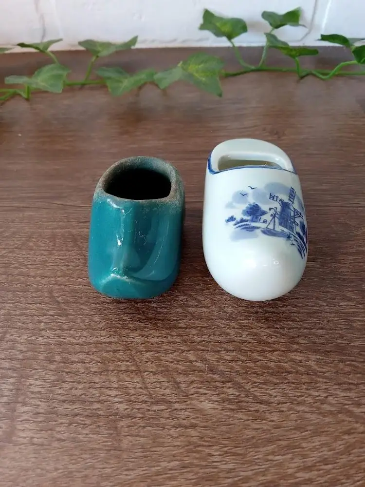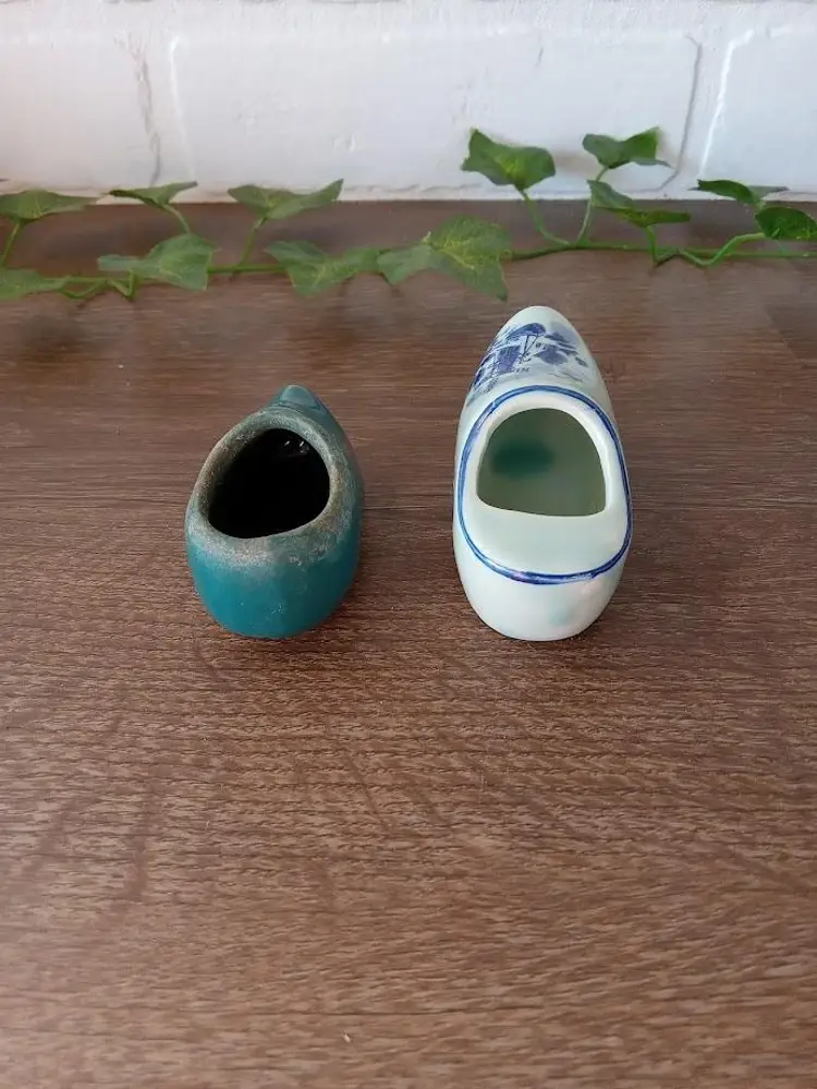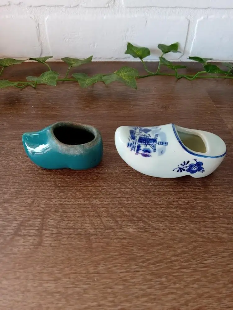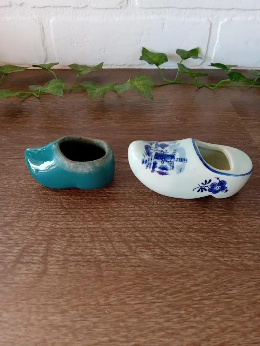 Set of 2 Blue Miniature Dutch Shoes Clogs One is Enesco, one is Unmarked and Art Pottery 2520