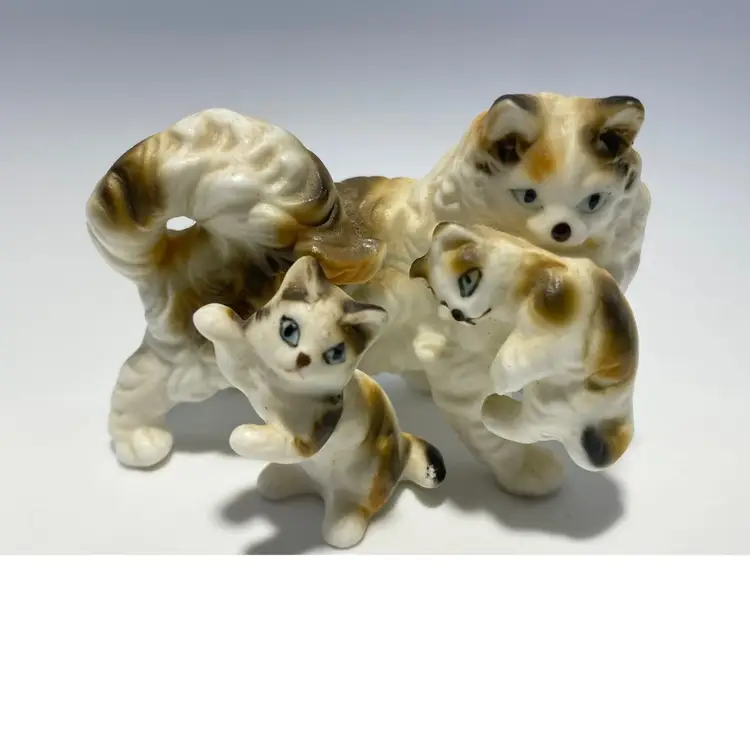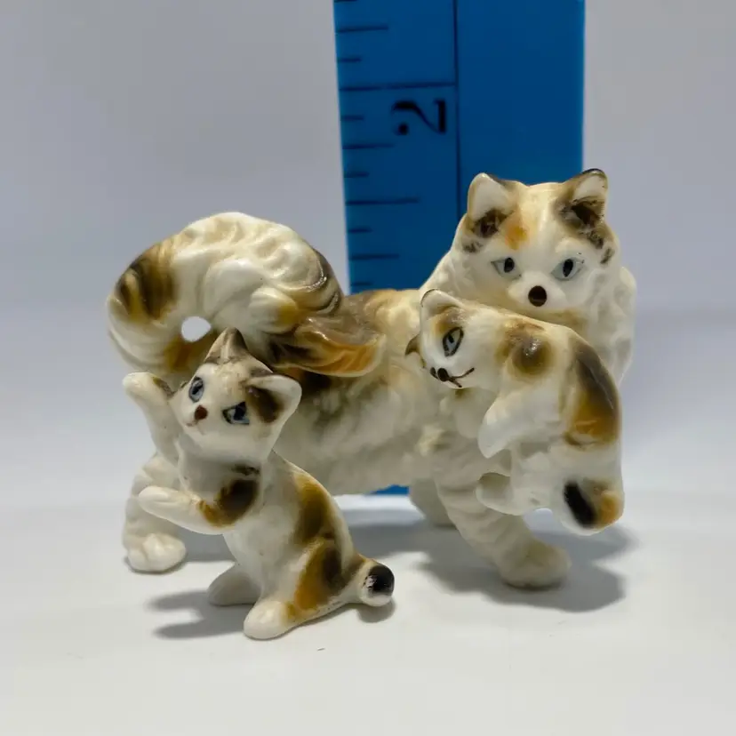 Approximate Size: 1.75" H x 2" L For Mom & Kitten. Single Kitten is : 1" H x 1" L Unmarked. Good Condition. Light Wear On Tail Paint & Around Ears. No Cracks Or Chips. *** See Photos For Details