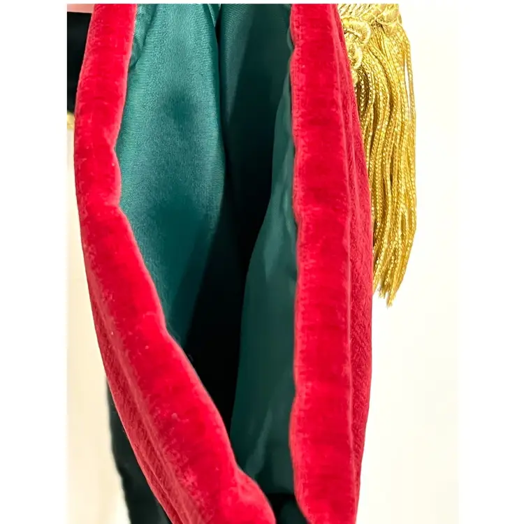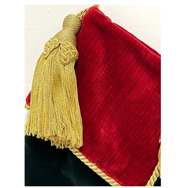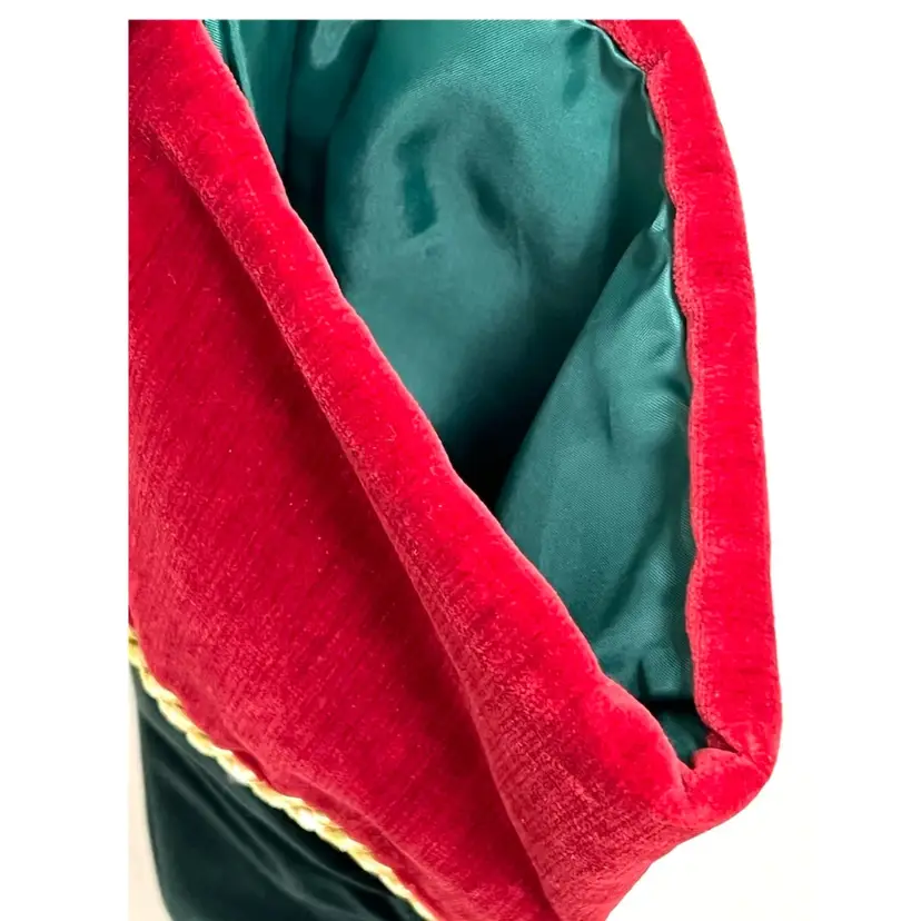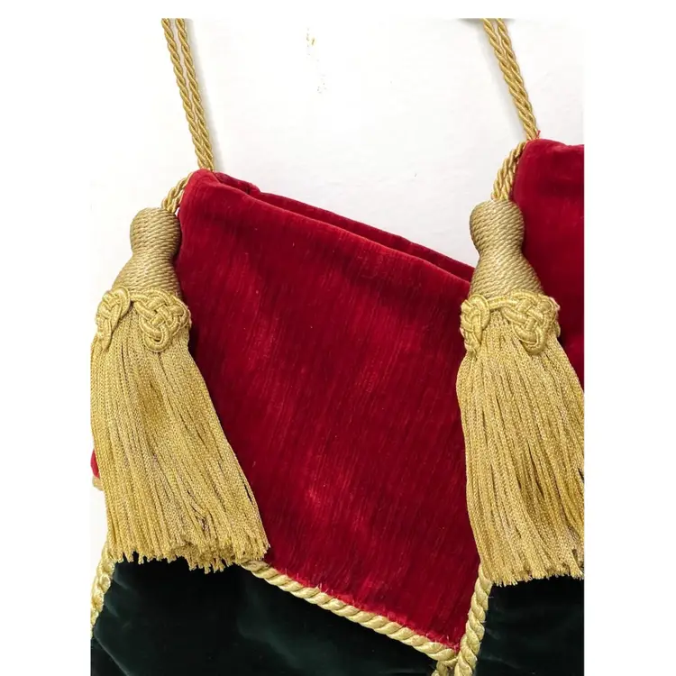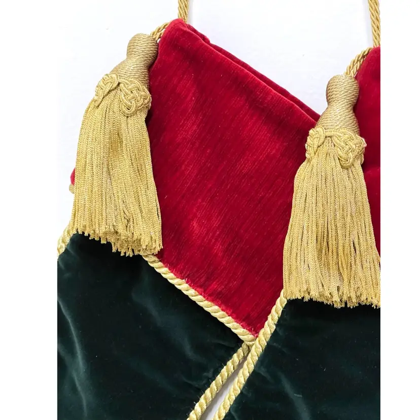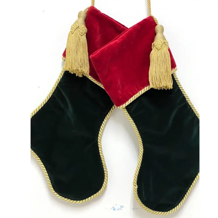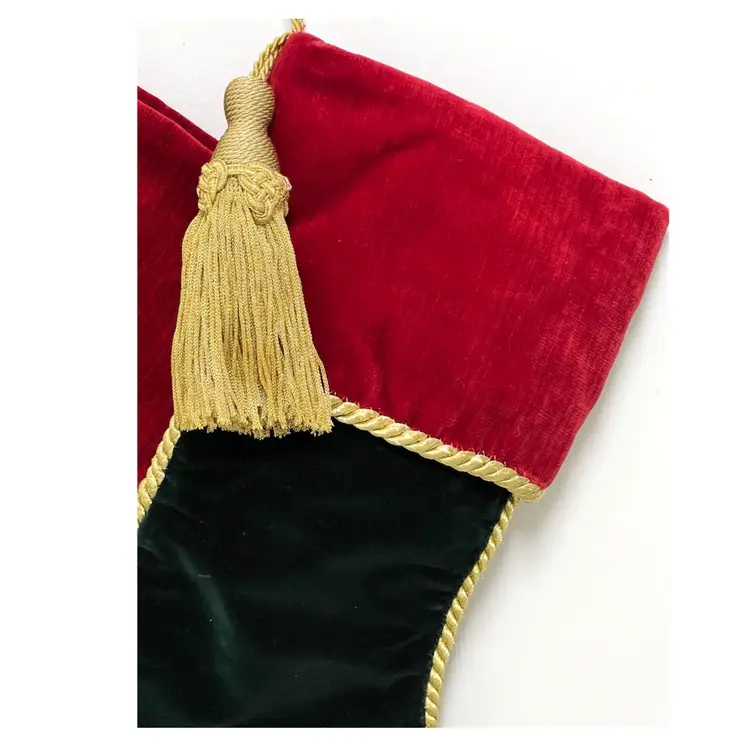Set Of 2 Christmas Decor Stockings Red Green with Gold Tassel. 17 in Height, 9.5 in Bottom Length. Excellent used condition