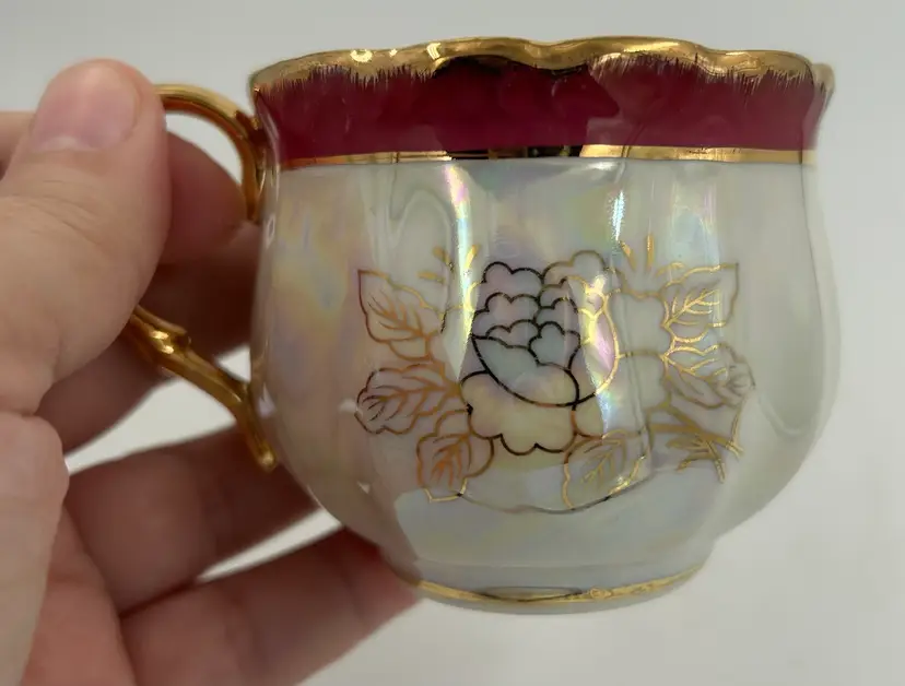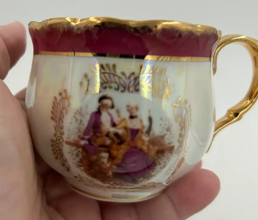 Handpainted Victorian Courtship scene with 24k gold accents. Cosmos USA import. No chips or cracks