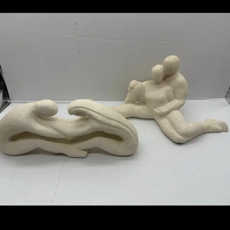 Set Of 2 Haeger Popcorn textured Male Female Sculpture 1999 & Reaching Couple
