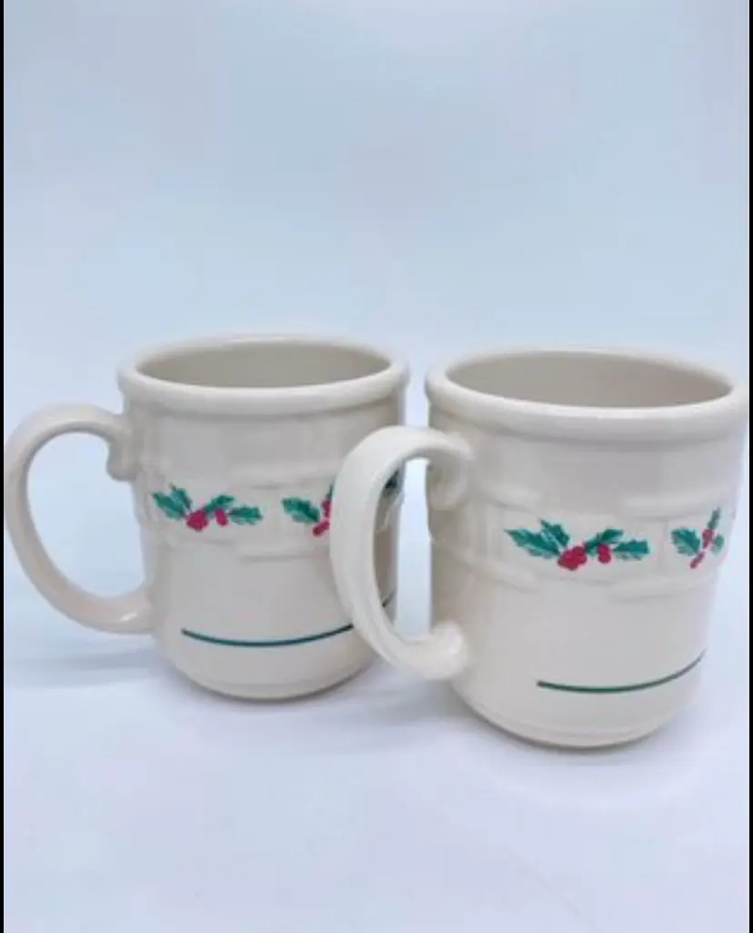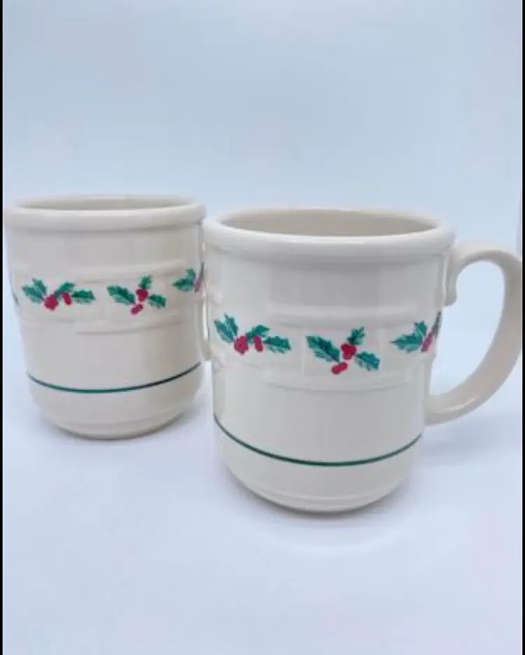 Set Of 2 Longaberger Pottery Holly Berry Mugs. In great condition. See photos.