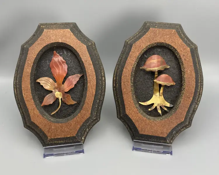 These wall plaques are in good condition. They measure approximately 7 5/8" tall x 5 1/2" across x 3/4" thick.