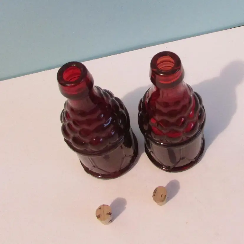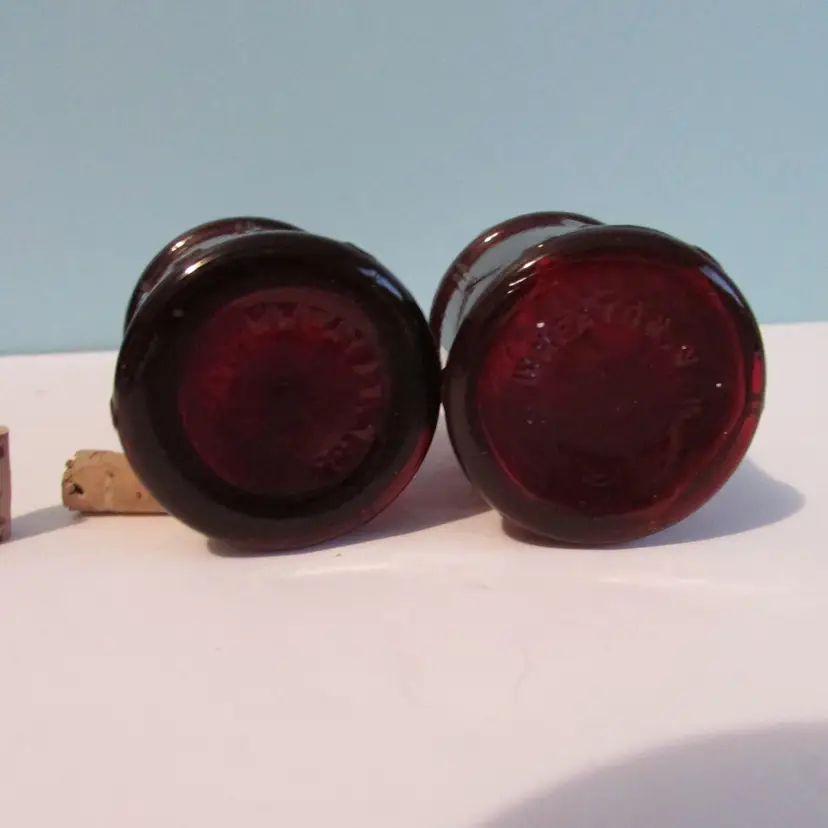 These nice bottles are in good condition, the corks are not original to the piece. Each is about 3 1/4" tall. This is shipped from a smoke free home. Thanks for looking! locub65