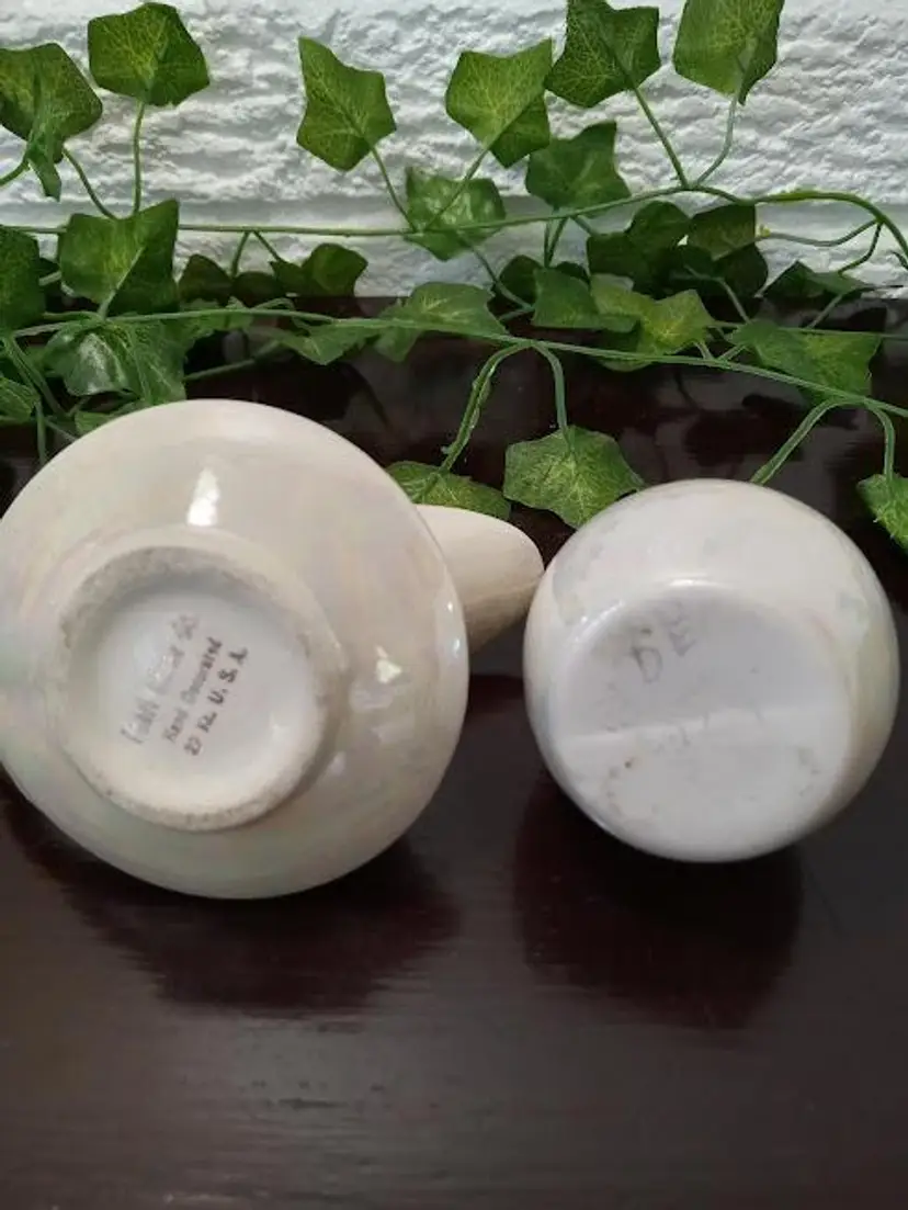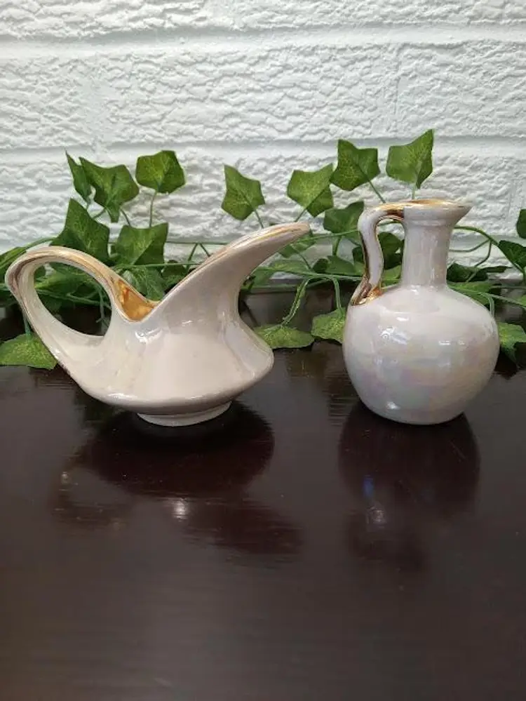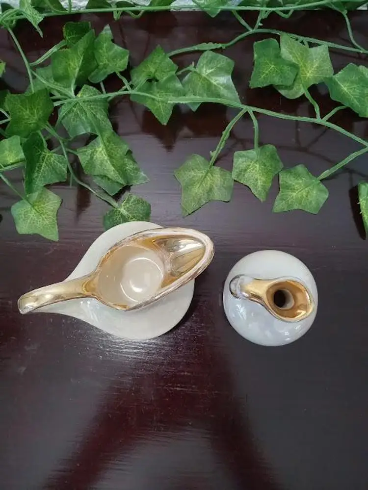 Set of 2 Pearlized Miniature Pitcher Creamer With Gold Detail 3.25" T 4" L KK